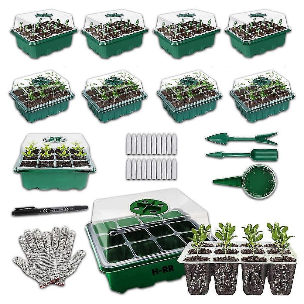 10 Pcs Seed Tray,adjustable Humidity&increase Germination Rate&reusable 120cell Seed Kit With Drain