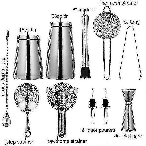 10 pcs Stainless Steel Boston Shaker Professional Bartender Kit sliver