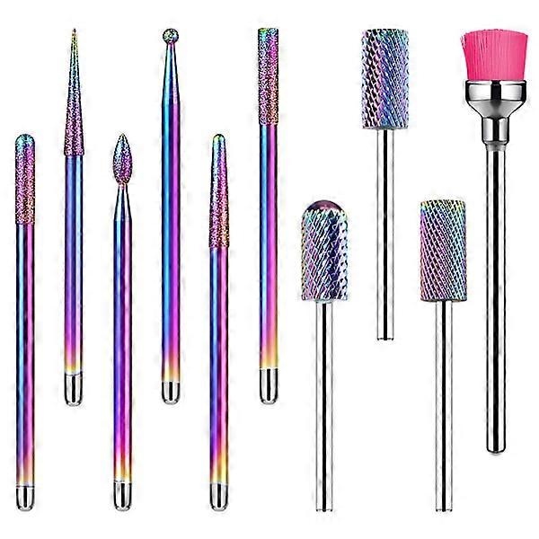 10 pcs Tungsten Steel Nail File Bits Set (Colorful), Professional Gel Acrylic Cuticle Remover, Diamond Tungsten Carbide Nail File Tools, Manicure