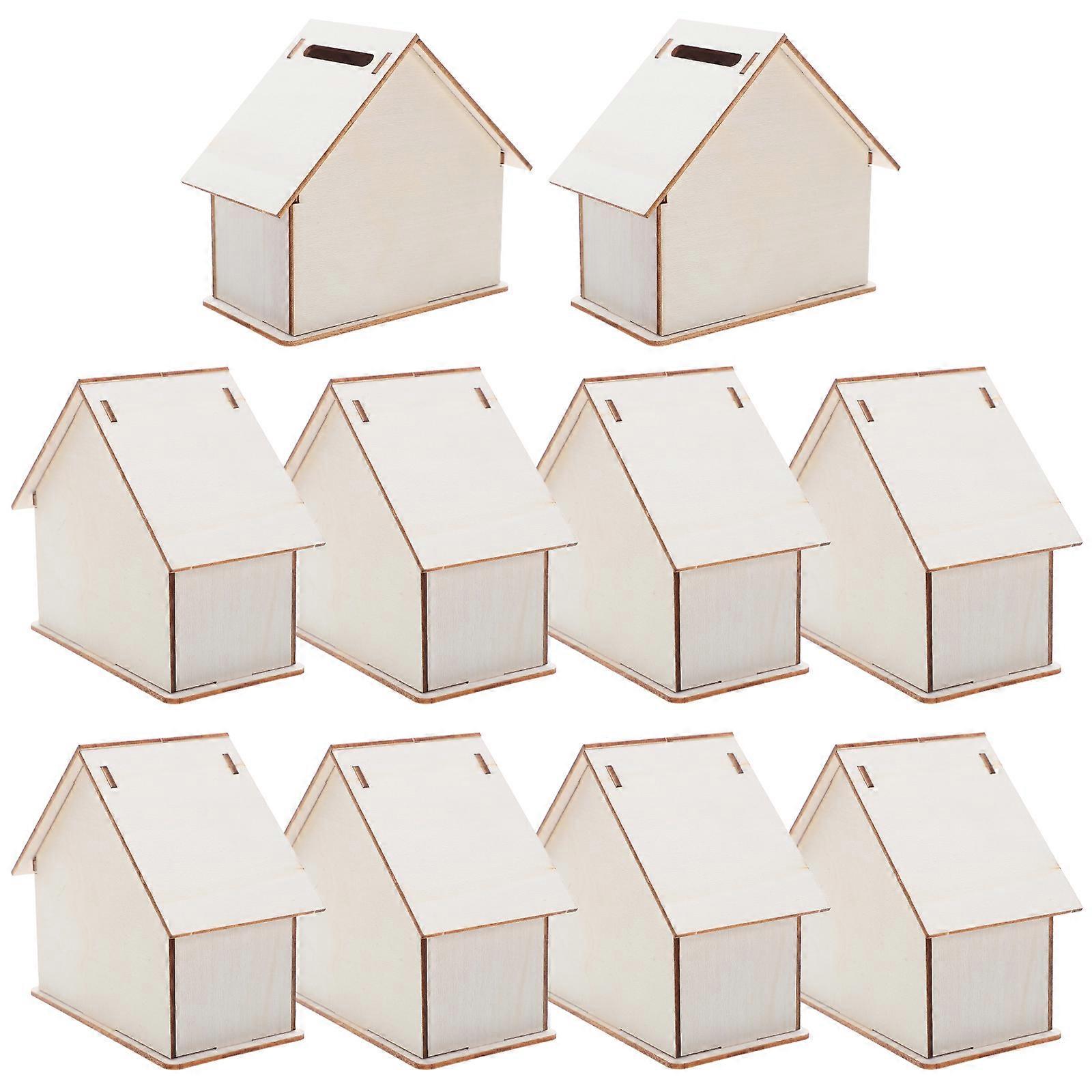 10pcs Paintable Wooden Piggy Bank DIY Craft Kit – House Shaped Coin Bank for Creative Painting, Decorating & Financial Learning