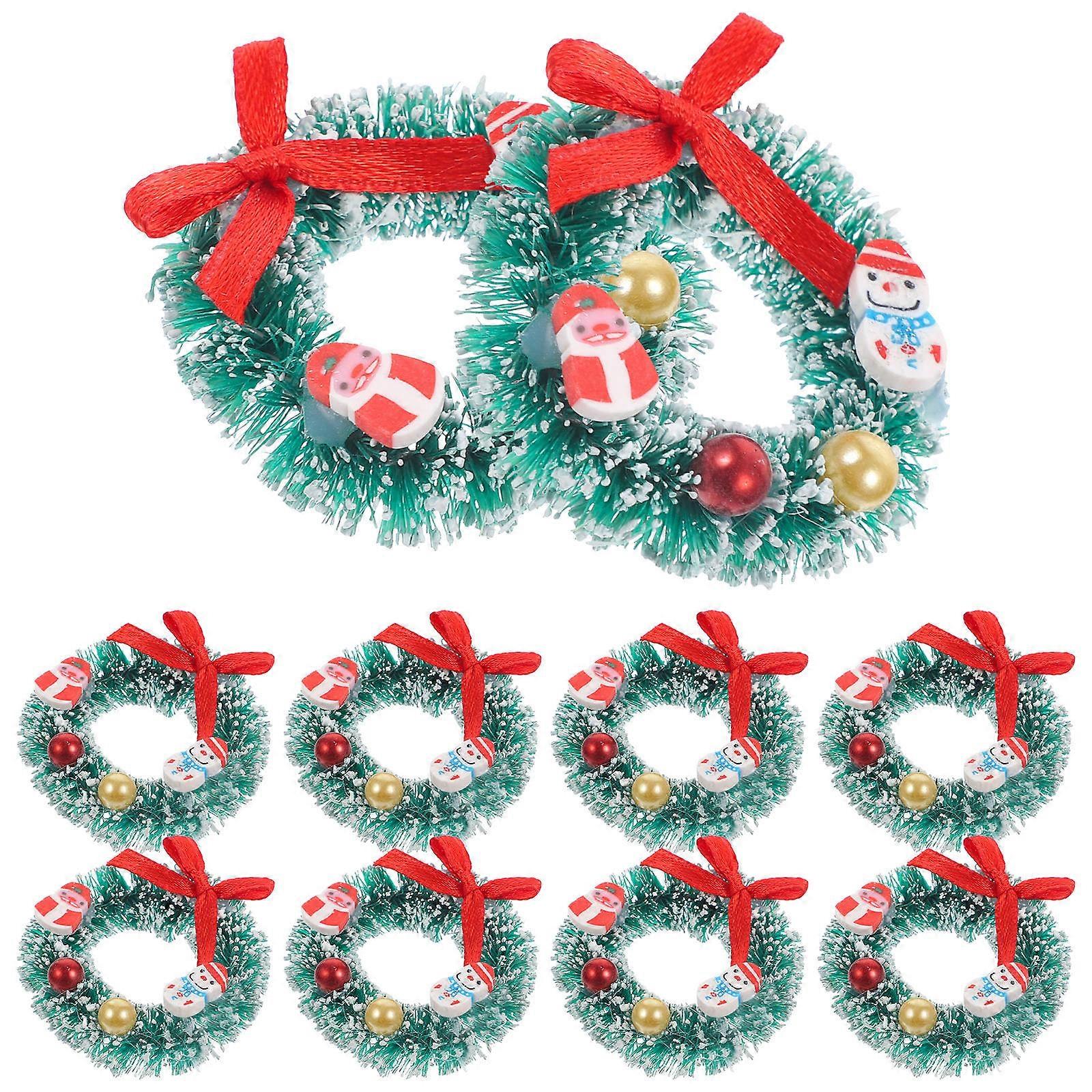 10pcs Mini Christmas Wreath Figurines for Holiday Scene Indoor Winter Decorations Festive Party Atmosphere