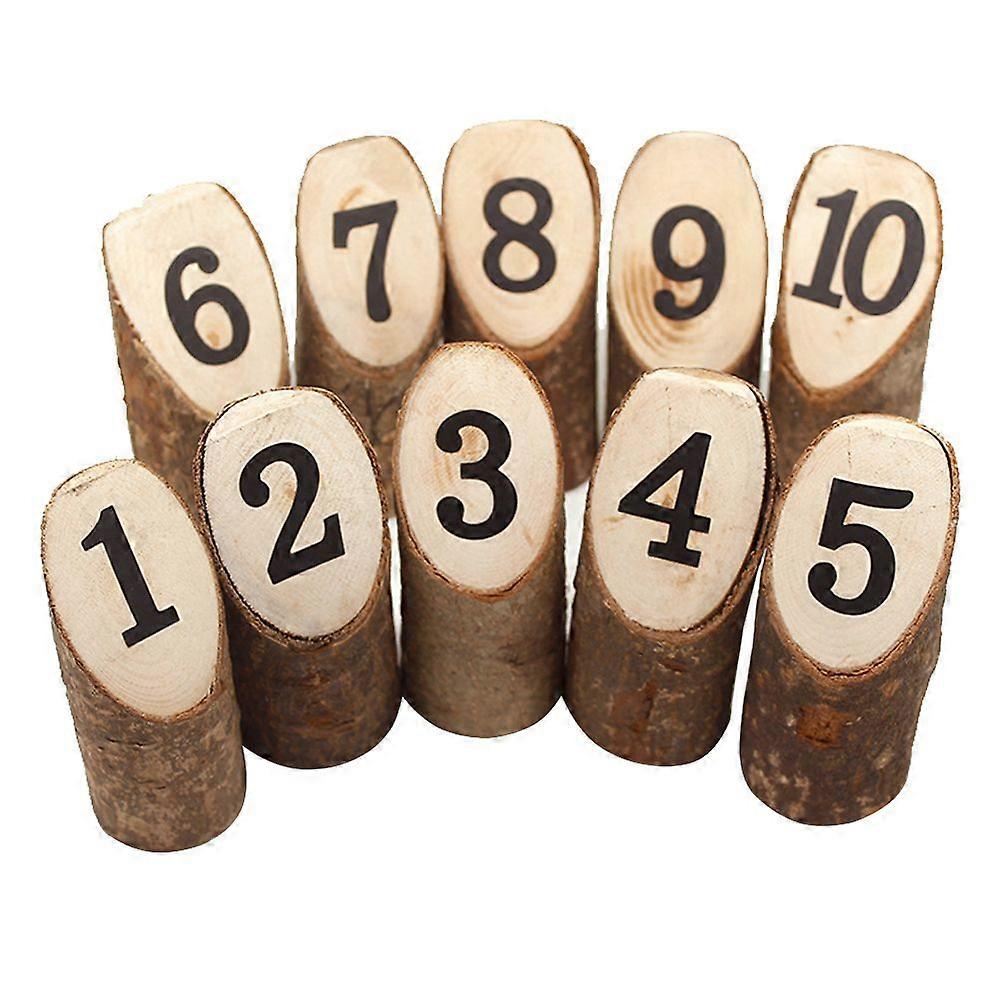 10Pcs Mini Wooden Stumps Number Printed Stub Small Tree Stand Rustic Ornament Table Number Displayer for Home Party