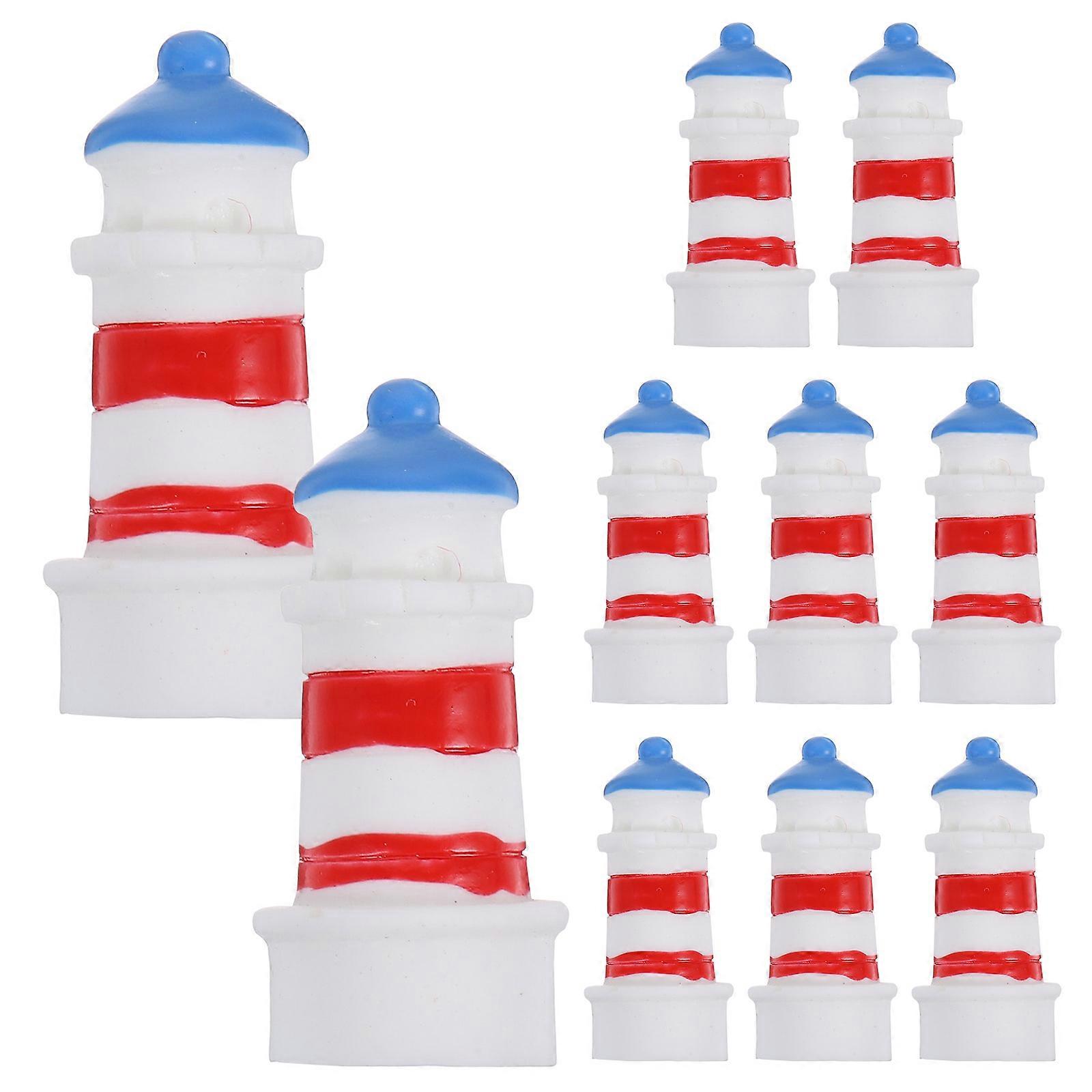 10pcs Mini Lighthouse Ornaments, Vibrant Resin Beach Decor, DIY Assembly Figurines for Home & Garden Decoration