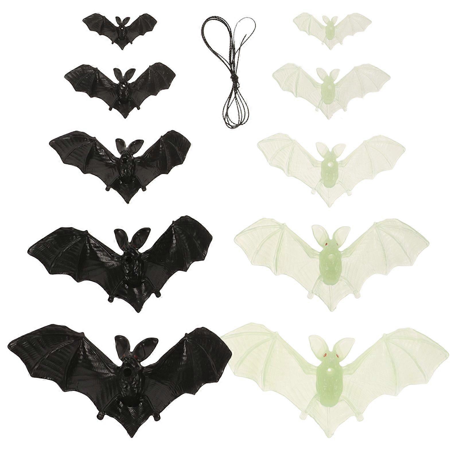 10pcs Realistic Glow-in-the-Dark Bat String Decorations for Halloween DIY Hanging Bats