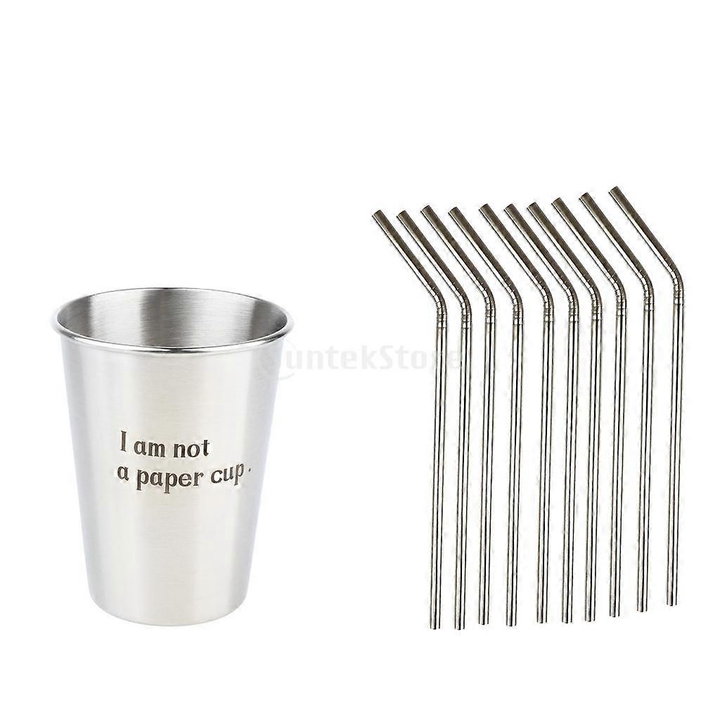 10 Pieces Reusable Stainless Steel Curved Drinking Straws and 10 Pieces Cups