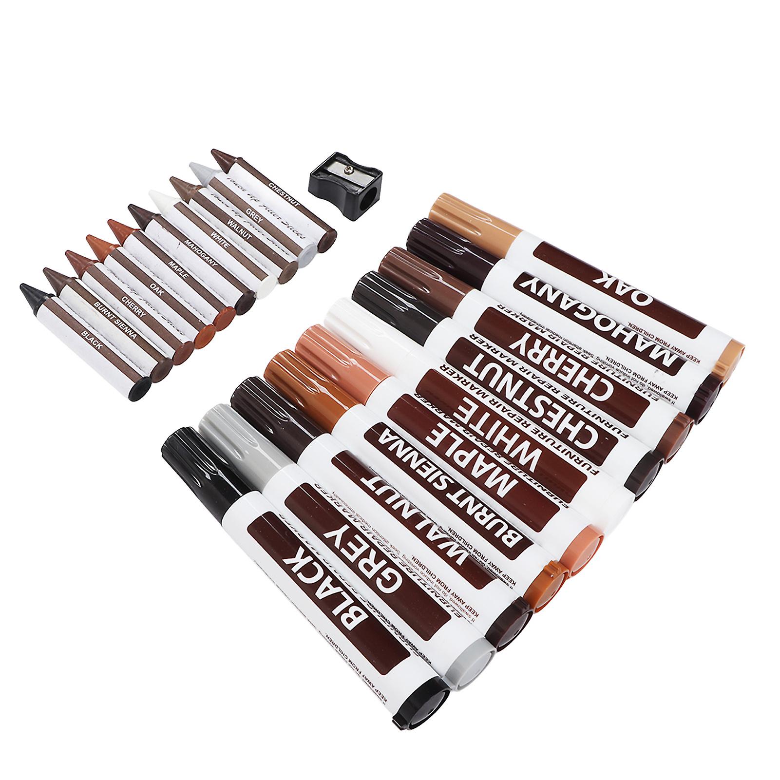 10Pcs Furniture Markers Waterproof Quick Dry Scrub Resistant Widely Used Wood Markers with Sharpener Crayon for Repair