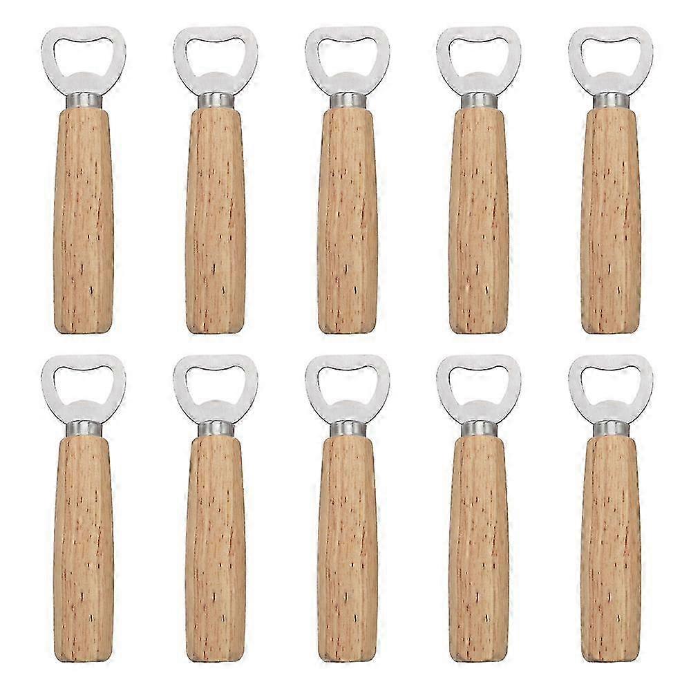 10 Pcs Wood Handle Stainless Steel Bottle Opener for Home Bar Kitchen Restaurant