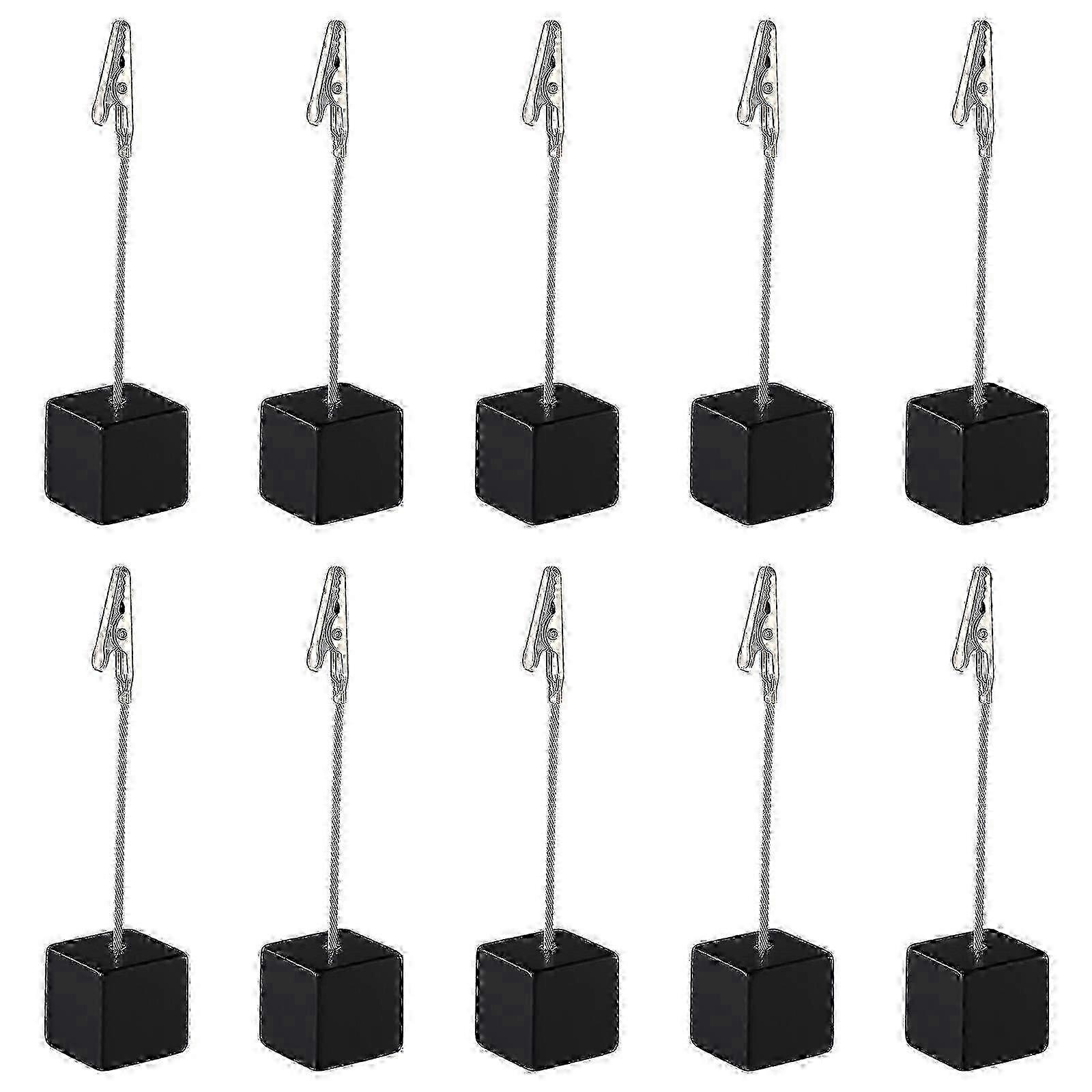 These items not only can be used as memo clips, can also be used as table number stands. The cubic woodenbase is stable and decorative. In addition, the clips are made of premium metal materials, lightweight and compact, easy and durable to use. Features - Color: Black.- Material: wooden, metal- Size: About 11.50X2.50X2.50cm/4.52X0.98X0.98in.- Great for writing down your office tasks on a memo and clip it on the tabletop.- Can clip you photos, business cards, etc., make your tabletop simple and clean.- The wooden base is designed in to cubic shape, stable placement and good decorative effect.- Suitable for various occasions, such as wedding, party, banquet, business conference, etc.- The clip stands can be used for name cards, table numbers, place cards, and more.Package list: 10 x Photo Clip Holders