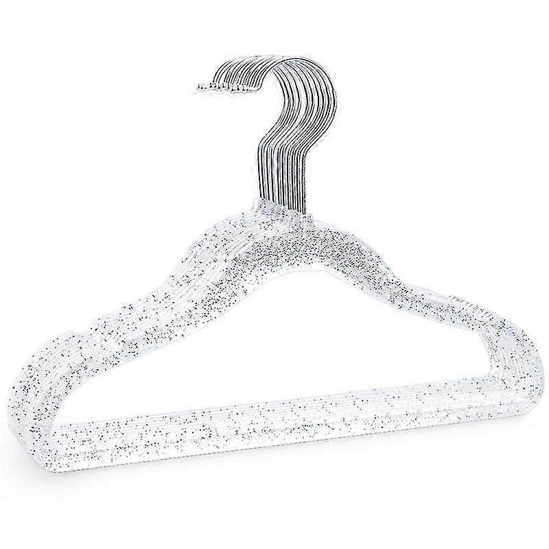 10Pcs Clothes Hangers Plastic 40cm Glitter Transparent Crystal Seamless Clothes Racks for Closet Wardrobe Silver Glitter