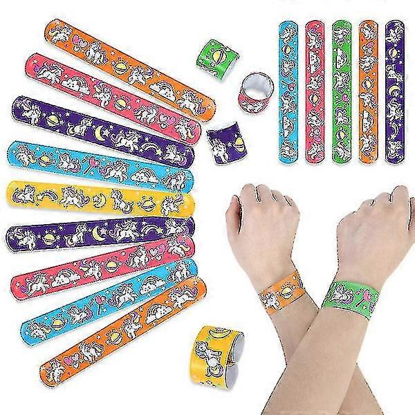 10 pcs cartoon unicorn clap circle girl 1st unicorn theme birthday party decoration kids toy gift mermaid dinosaur slap bracelet(animal)