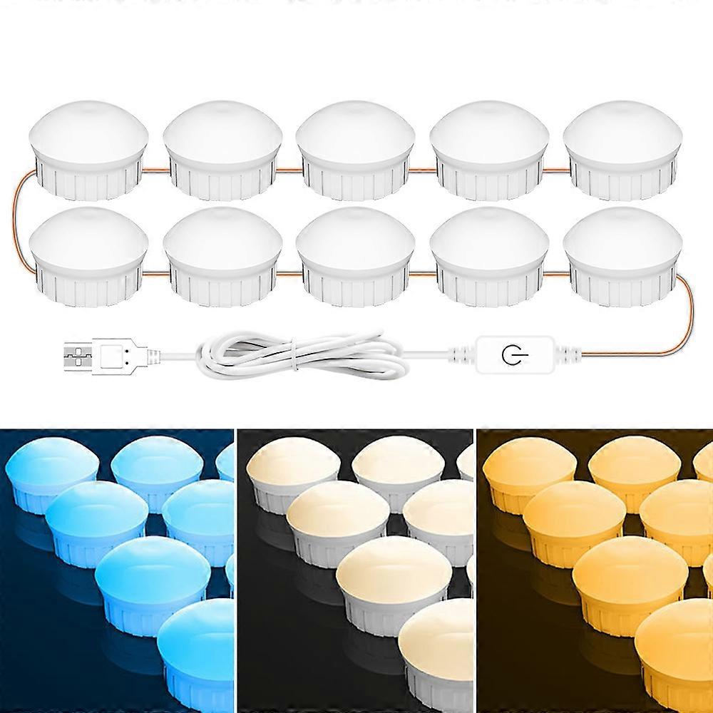 10 LEDs Cosmetic Room Bathroom Mirror Front Light USB Three-Color Dimming Light