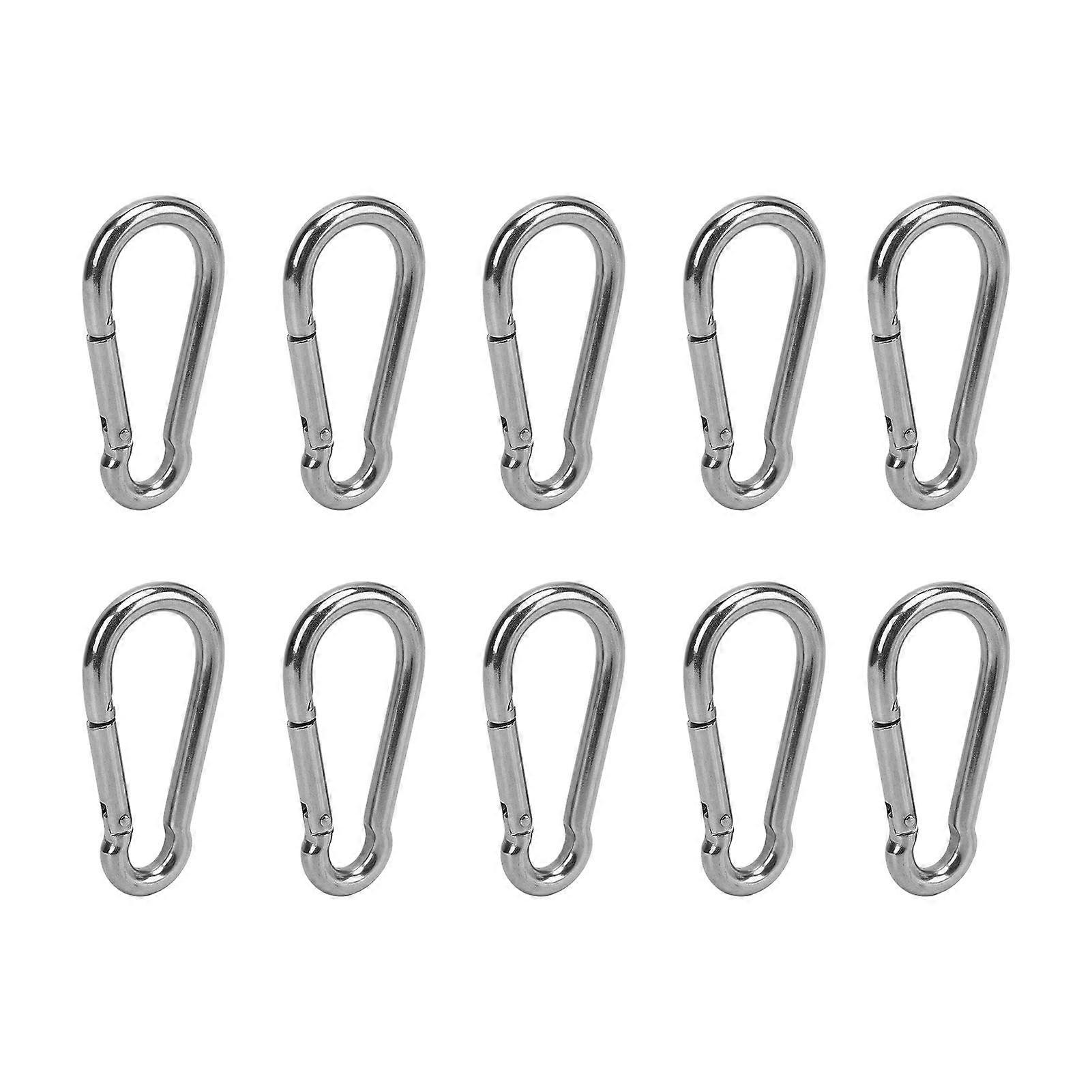 10Pcs Carabiner Clip Spring Snap Hook Stainless Steel Safety Buckle Lock for Hiking 11mm / 0.43in YMHC
