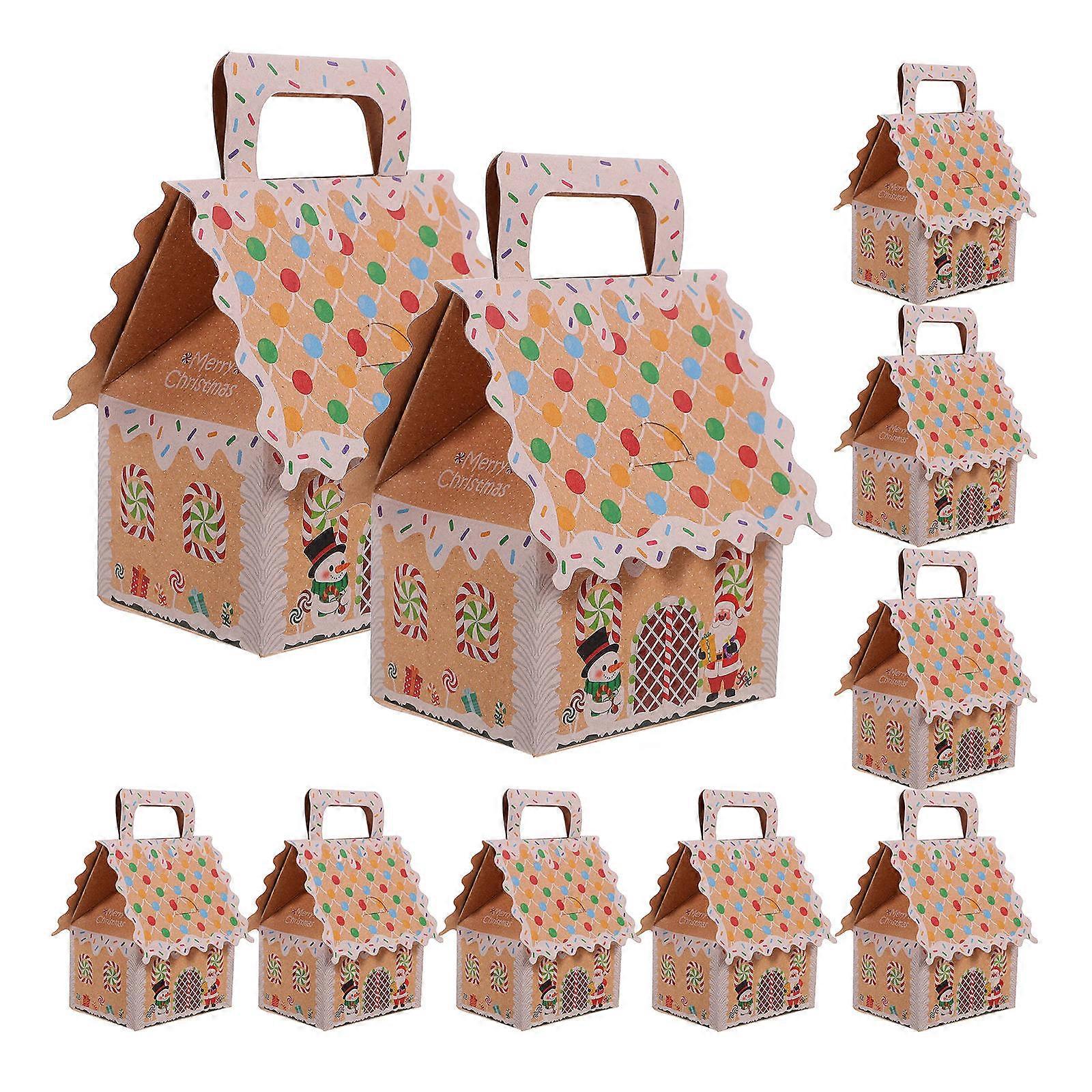 10pcs Gingerbread House Cookie Boxes – Portable Christmas Party Favors for Candies, Treats & Holiday Decorations – Great for Family Sharing