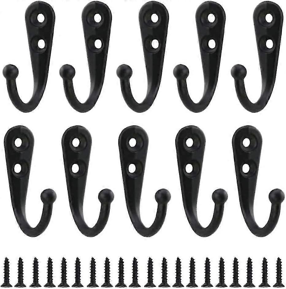 10 Pcs Single Hooks Black Wall Hooks Coat Rack Black Fitted With Mounting Screws