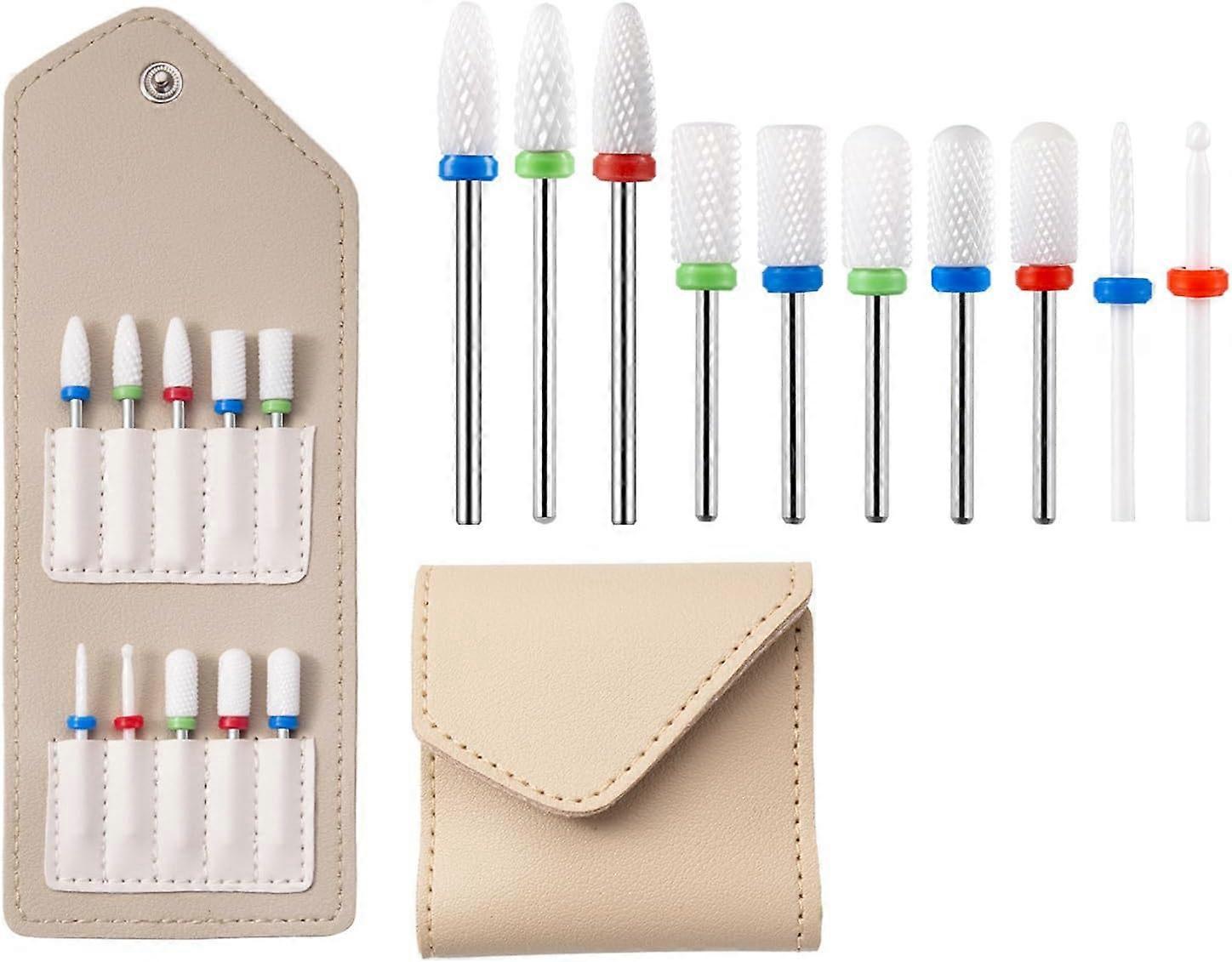 10 pcs Ceramic Nail Drill Nail Art Drill Accessories Tools with Storage Bag, ceramic