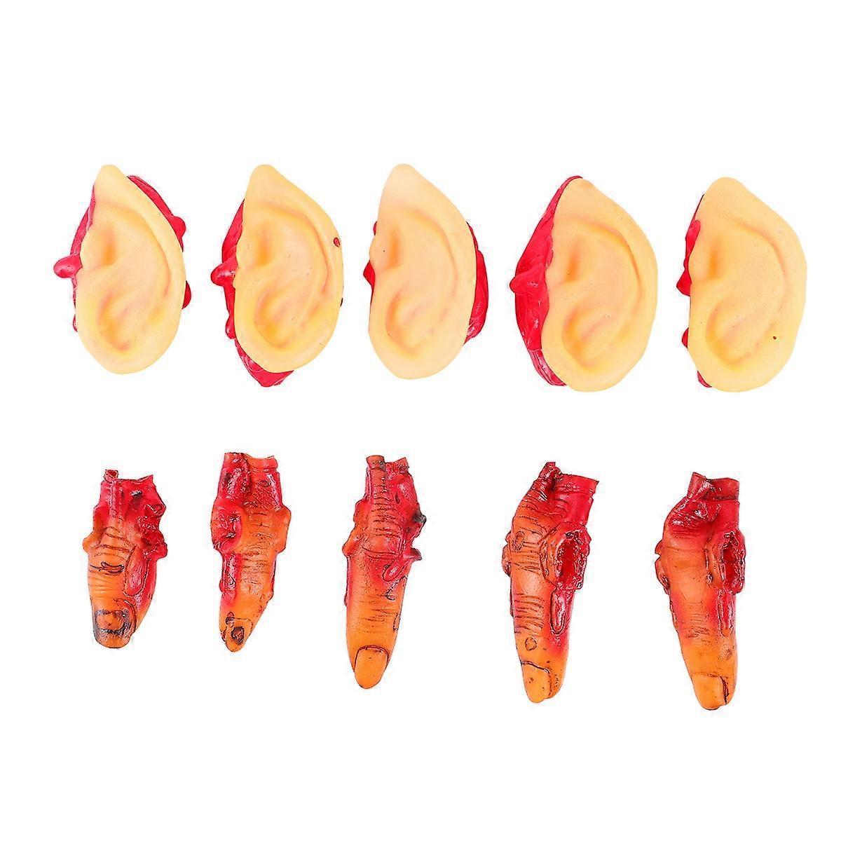 10 Pcs Halloween Props Bloody Scary Creepy Prank Props Toy for Horror Party Spooky Decorations (5 Dark Severed Fingers, 5 Ears)
