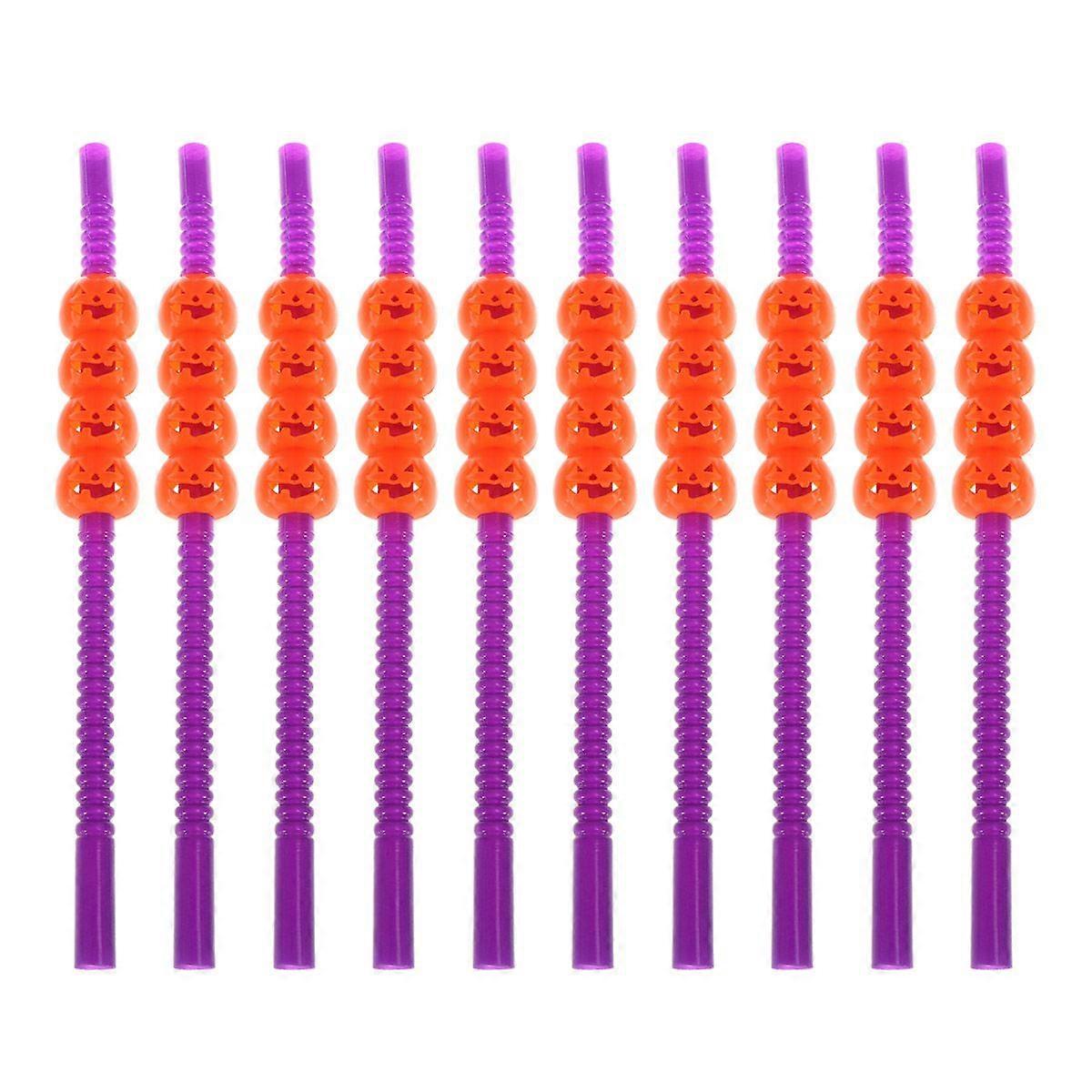 10pcs Plastic Pumpkin Straws Delicate Table Decor Spiral Straw Drinking Purple Straw for Bar KTV Beverage Store Halloween Decoration Party Favors