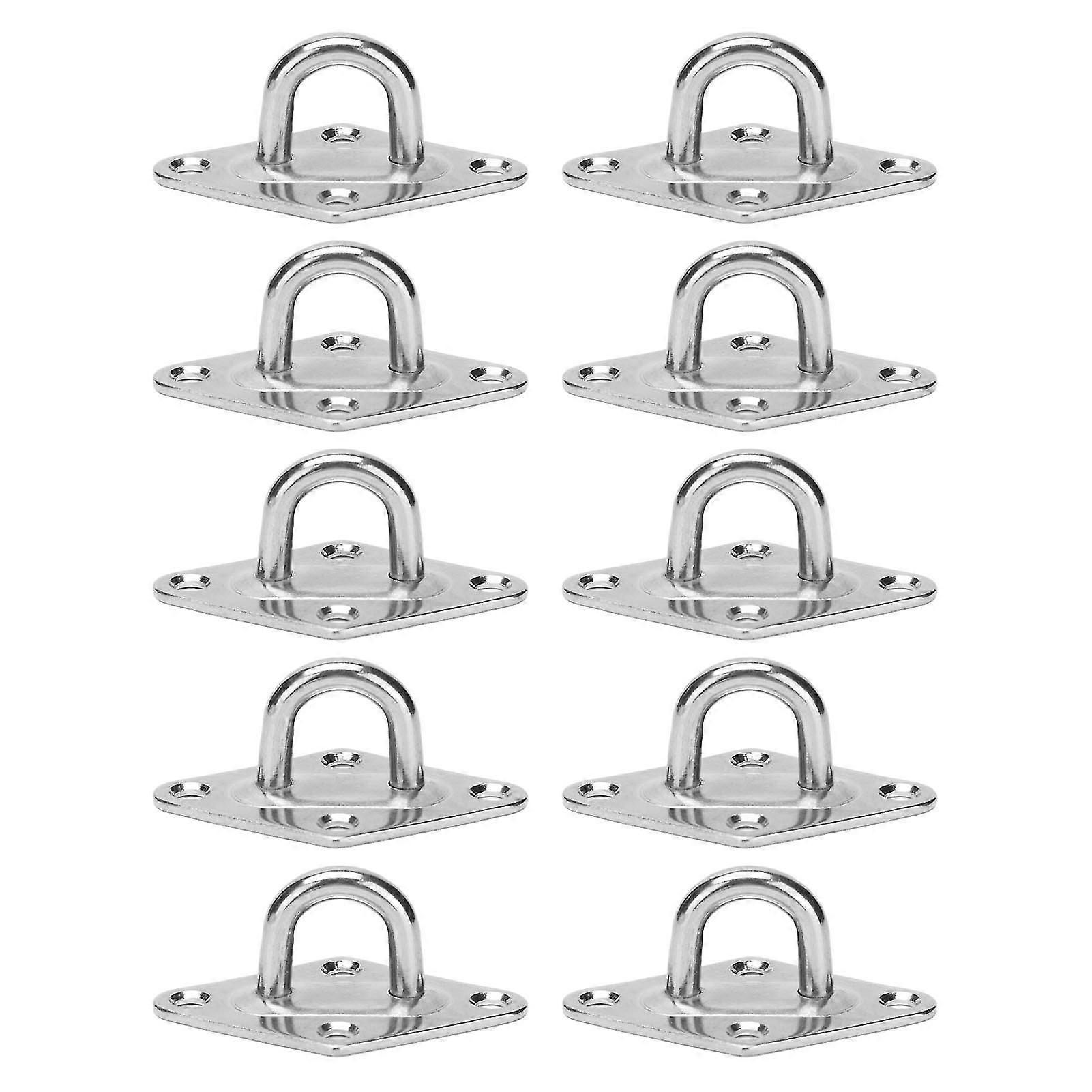 10Pcs Heavy Duty Eye Plate Hammock Hooks - 316 Stainless Steel, Marine Grade Fixed Buckle, 5mm Diameter