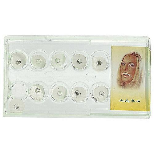Specifications: Make your teeth more beautiful, make your smile more shining. Excellent tools for DIY amateur of nail and teeth decoration. With glue backside, not easy to fade, not easy to fall off. Coming with one box for easy storage. Type: Oral Teeth Crystal Material: Acrylic Color: Transparent(White) Quantity: 10 Pcs in 1 Set Occasions: Evening Party, Cocktail, Dance, Club, etc Features: Glitter Effect, Teeth Jewelry, Fashion Accessory Each Tooth Crystal Diameter: 2mm/0.08" (Approx.) Box Dimension: 6cm x 3.4cm x 0.6cm/2.36" x 1.34" x 0.24" (Approx.) Notes: Due to the light and screen setting difference, the items color may be slightly different from the pictures. Please allow slight dimension difference due to different manual measurement. Package Includes: 1 Box of Oral Teeth Crystals(Total 10 Pcs)