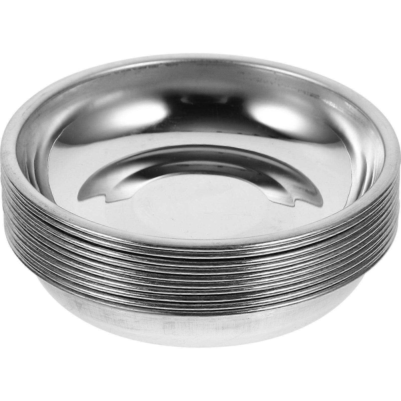 10Pcs Round Dishes Stainless Steel Sauce Dishes Mustard Appetizer Plates (8cm)