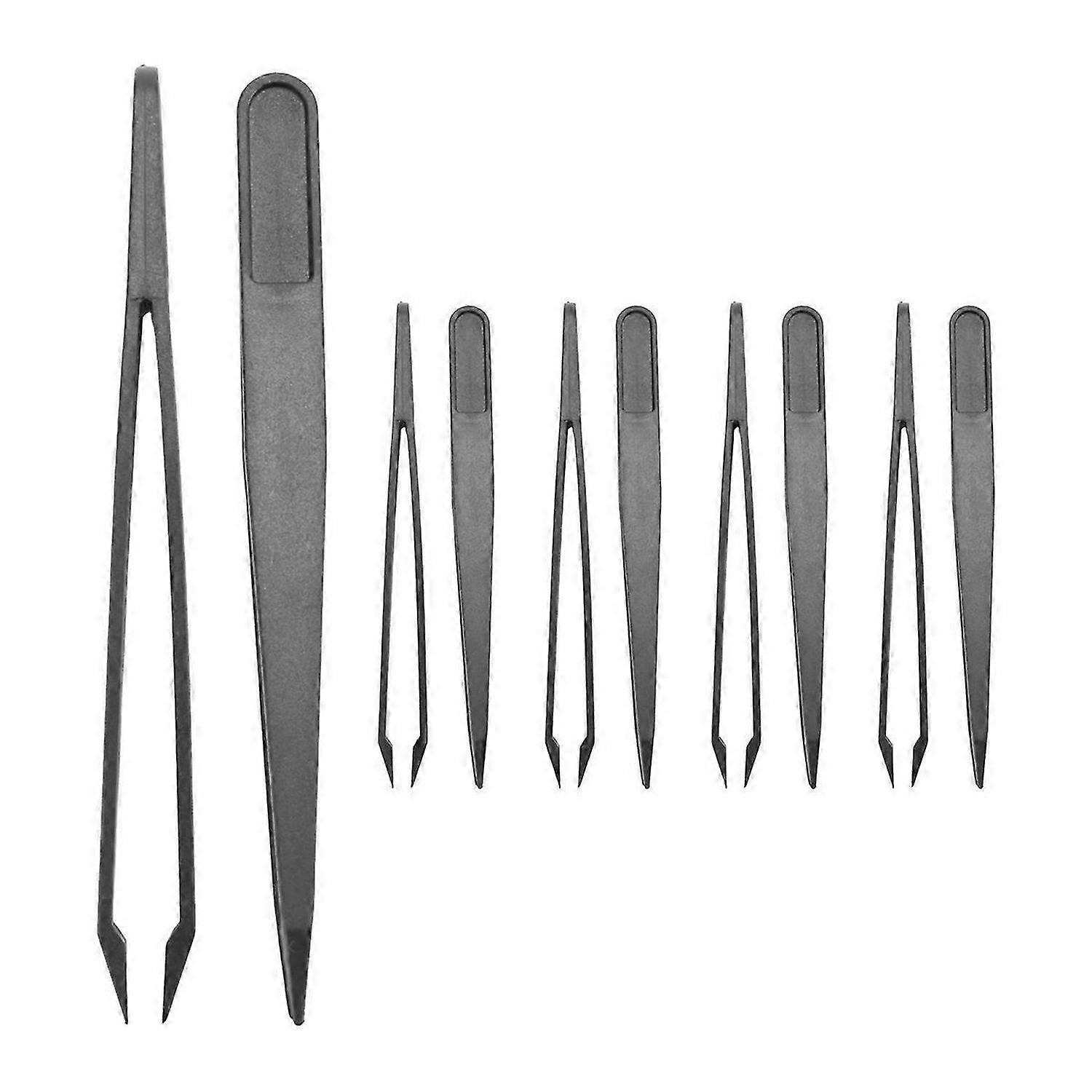 10 Pcs Black Plastic Tip Head Anti Static Tweezer 12cm Length