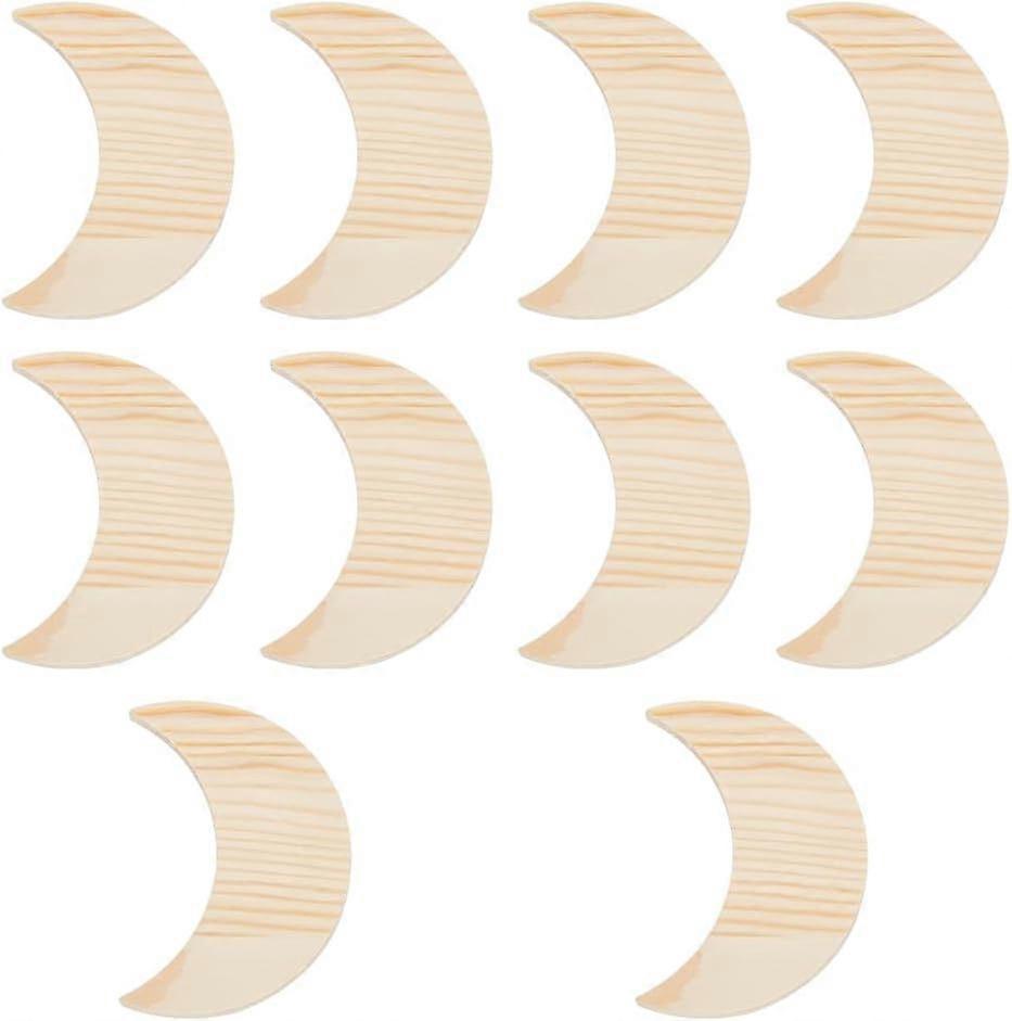 10 Pcs Thick Wood Moon Shaped Unfinished Natural Wood Slices Moon Wood Cutouts Blank Wooden Slices for DIY Crafts Door Hangers Holiday Decoration Draw