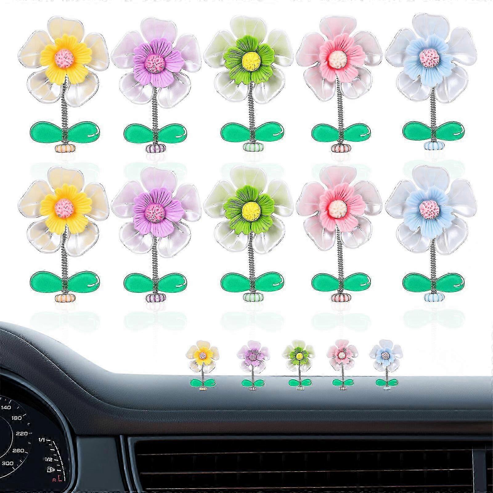 10 Pcs Shaking Flower Car Decor Car Flower Decor Small Flower Adornments Car Dashboard Decorations