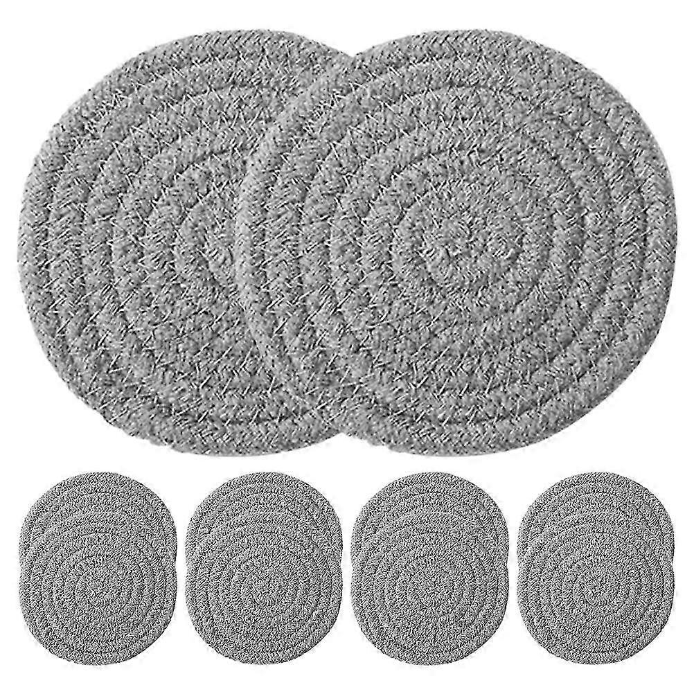 10Pcs Cotton Woven Coasters Braided Cup Mats 12x12cm Light Grey