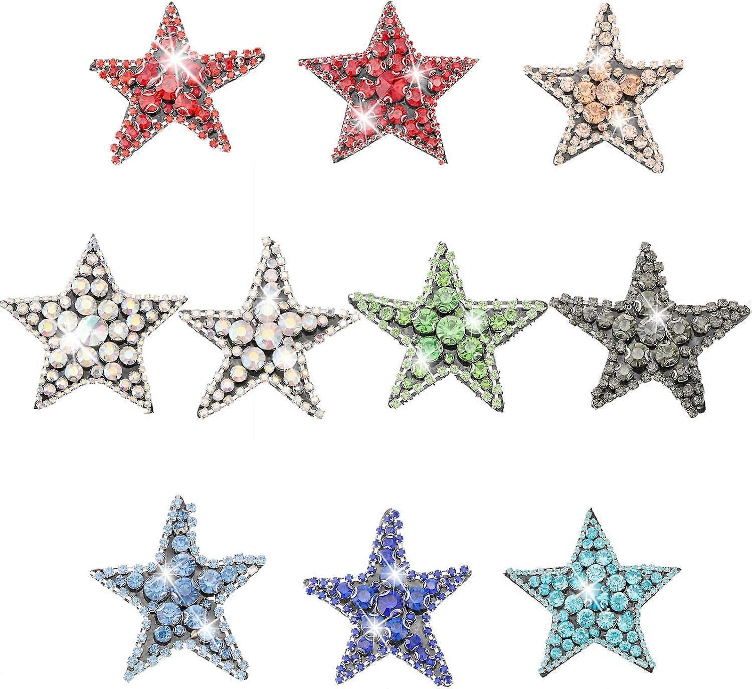 10Pcs 10 Style Star Shape Felt Ornament Accessories Rhinestone Beading Appliques Mixed Color 53~75x51~76x7~10mm 1pc/style