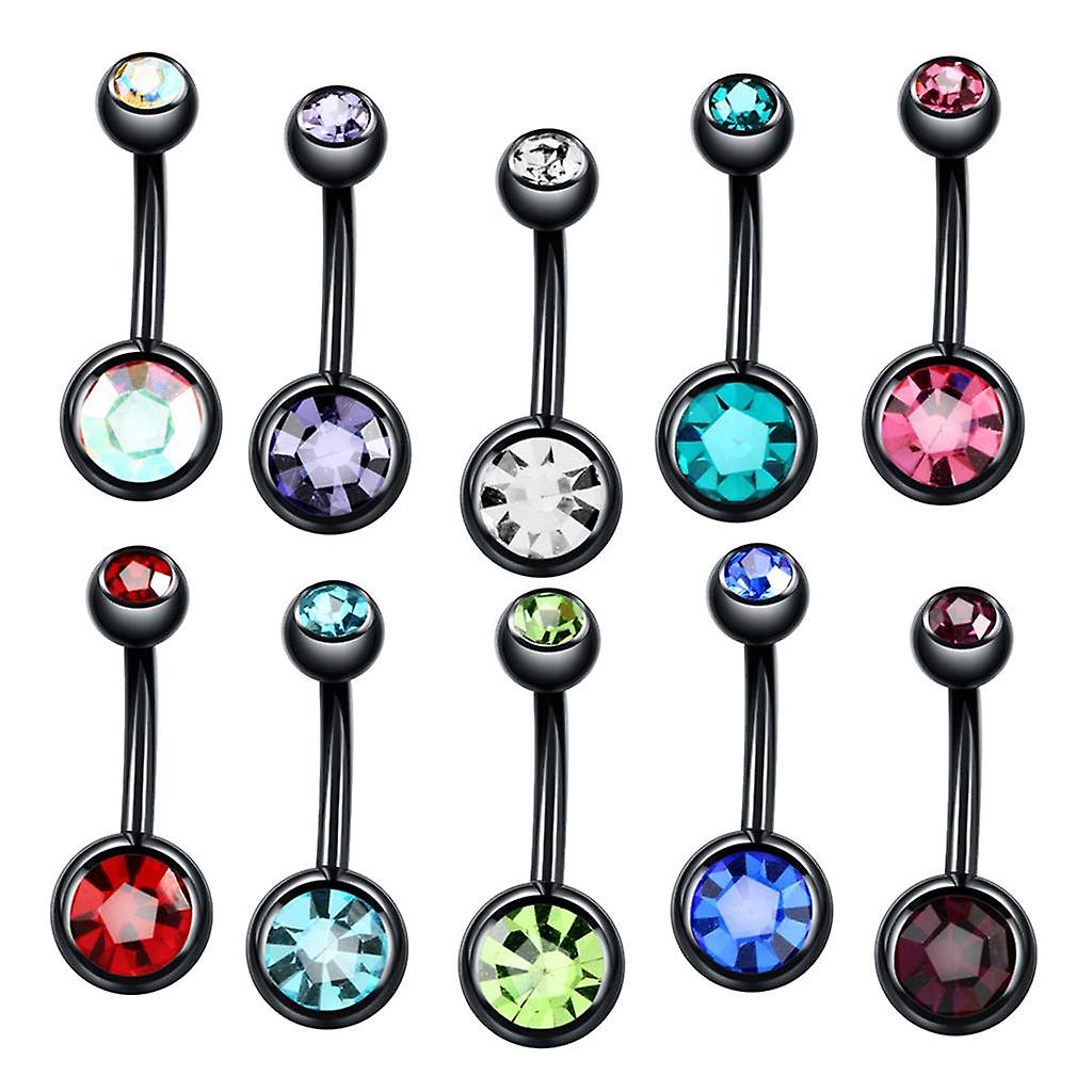 10pcs 14G Bling Crystal Belly Button Ring Navel Barbell Bar Piercing Jewelry
