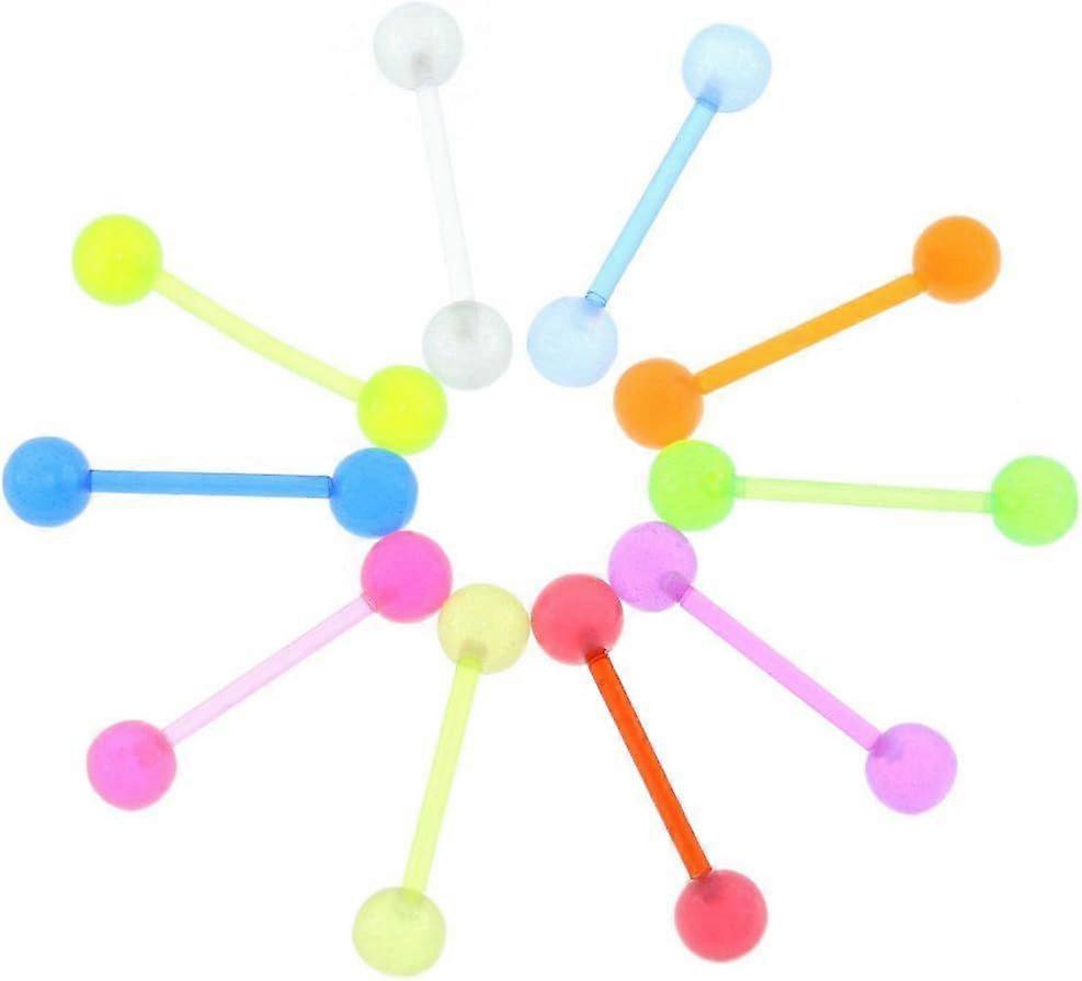 10pcs 14G Glow in The Dark Flexible Bioplast Tongue Ring Nipple Barbell 6mm