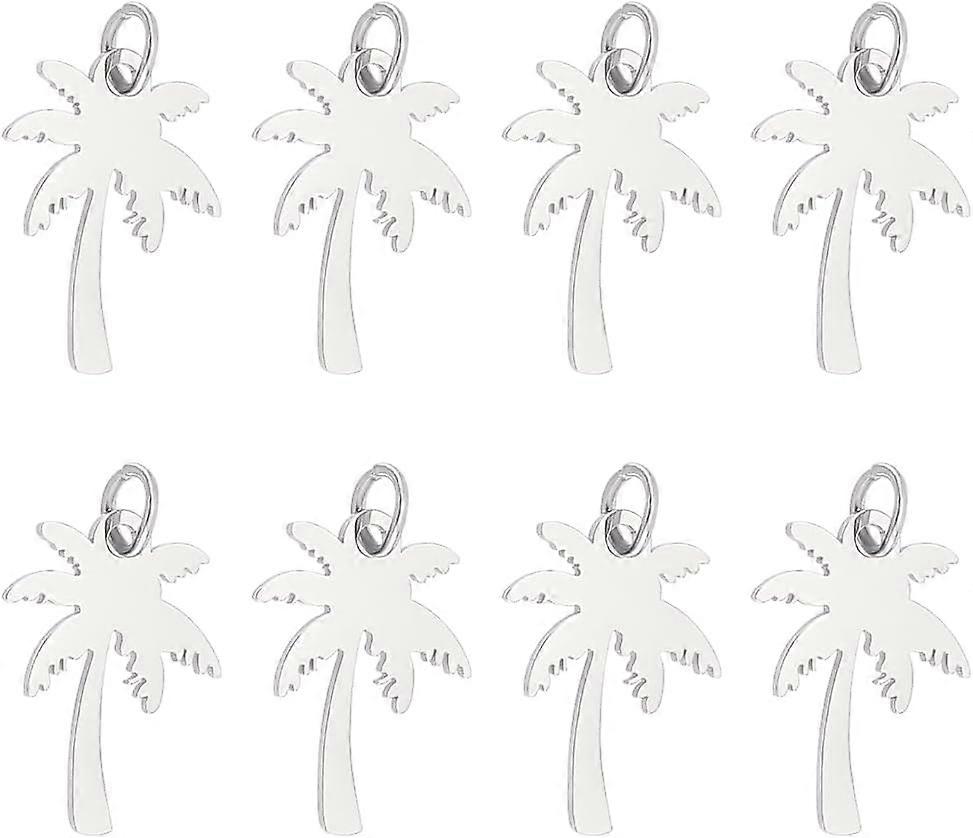 10Pcs 304 Stainless Steel Pendants Stamping Blank Charms with Unsoldered Jump Rings Coconut Tree/Coconut Palm Stainless Steel Color 17.5x12x1mm Hole: