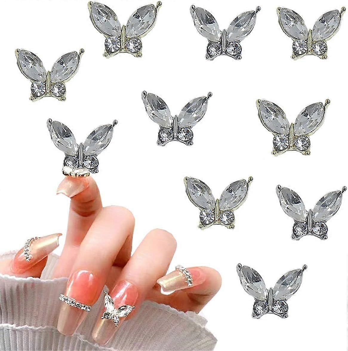 10Pcs 3D Alloy Butterfly Nail Art Charms Shiny Alloy Butterflies Shape Nail