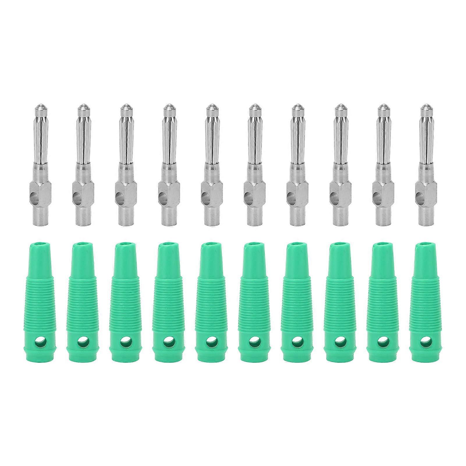 10Pcs 4mm 7Pin Banana Plug Copper 1000V 32A Stackable Male Plugs with Soft Sleeve Screw TightGreen
