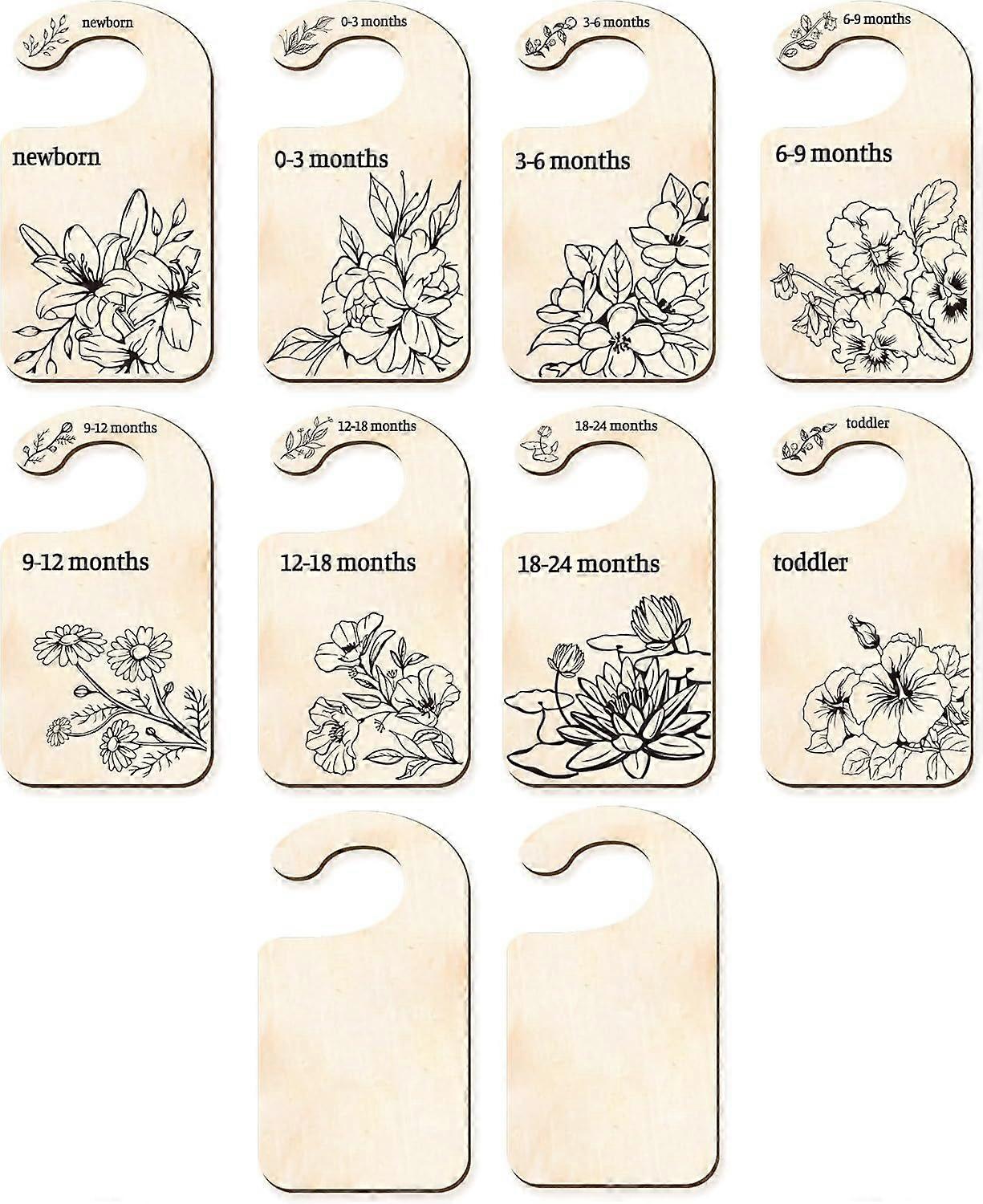 10 Pcs 8 Styles Line Drawing Flowers Clothing Rack Dividers Newborn to Toddler Wooden Closet Organizer Flat Floral Hanger Closet Dividers Plants Close