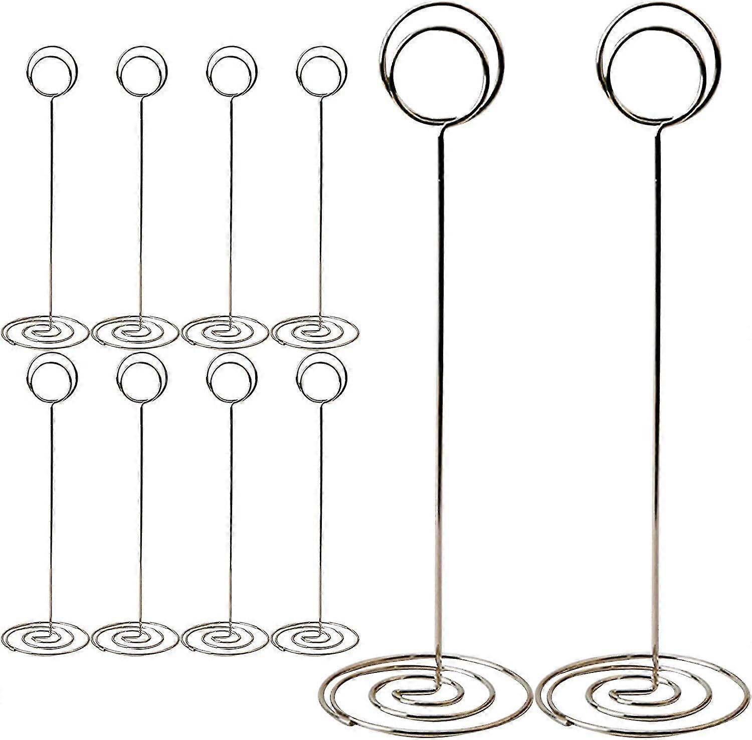 10 Pcs 8.75 Inch Place Card Holders Tall Table Number Stands Round Shape Tabletop Photo Holder, Silver
