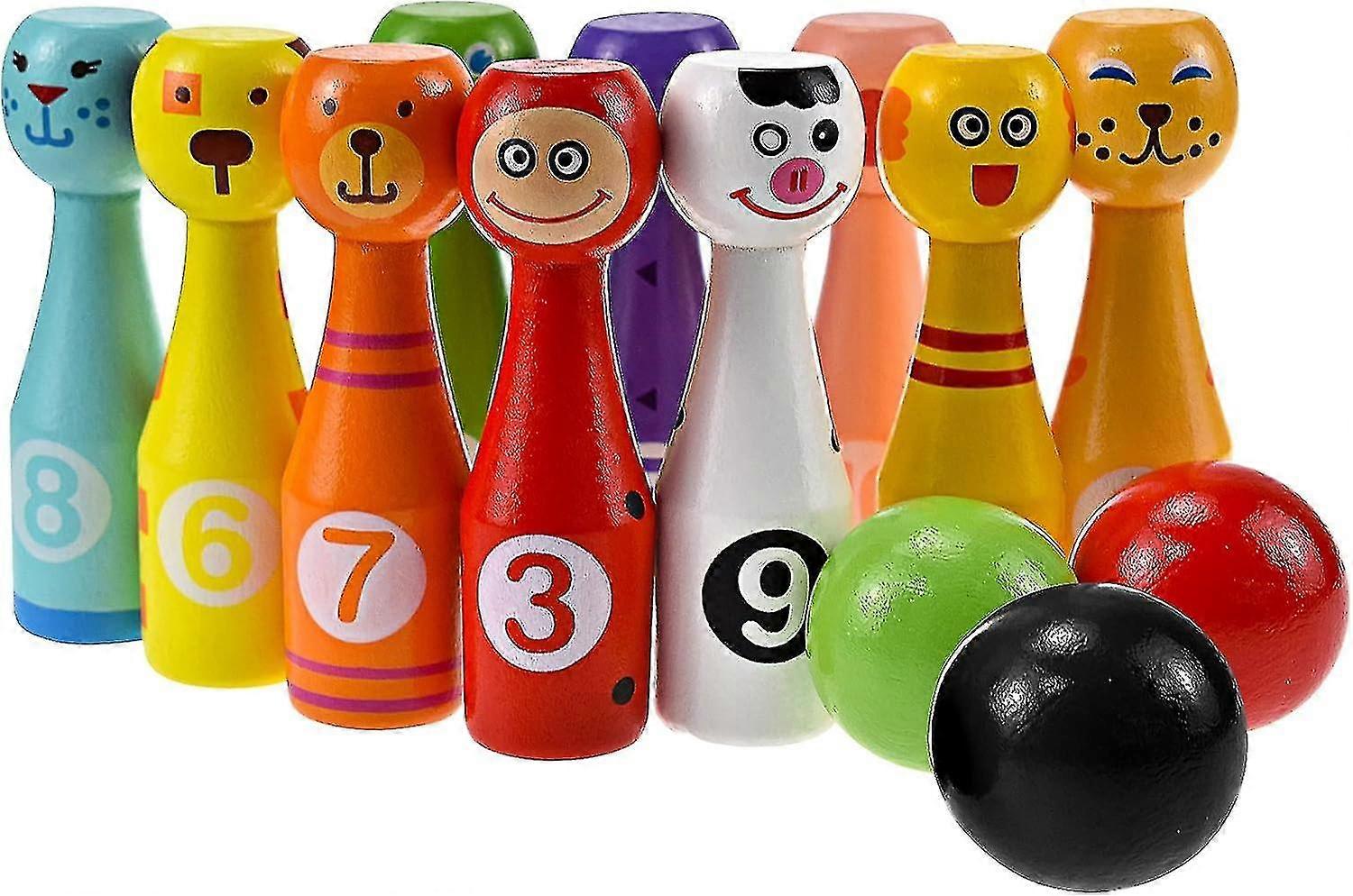Wooden Bowling Set With 10 Animal Pins And 3 Balls,skittles Toys For Toddlers-fun And Educational Gifts For Kids Age