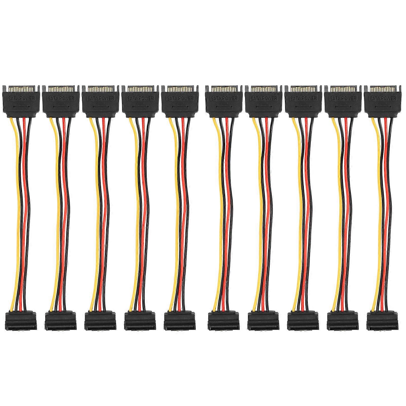 10 pcs SATA Power Cable 15-Pin Male to Female SSD HDD Angled Extension Cable with Spring for Data Transmission