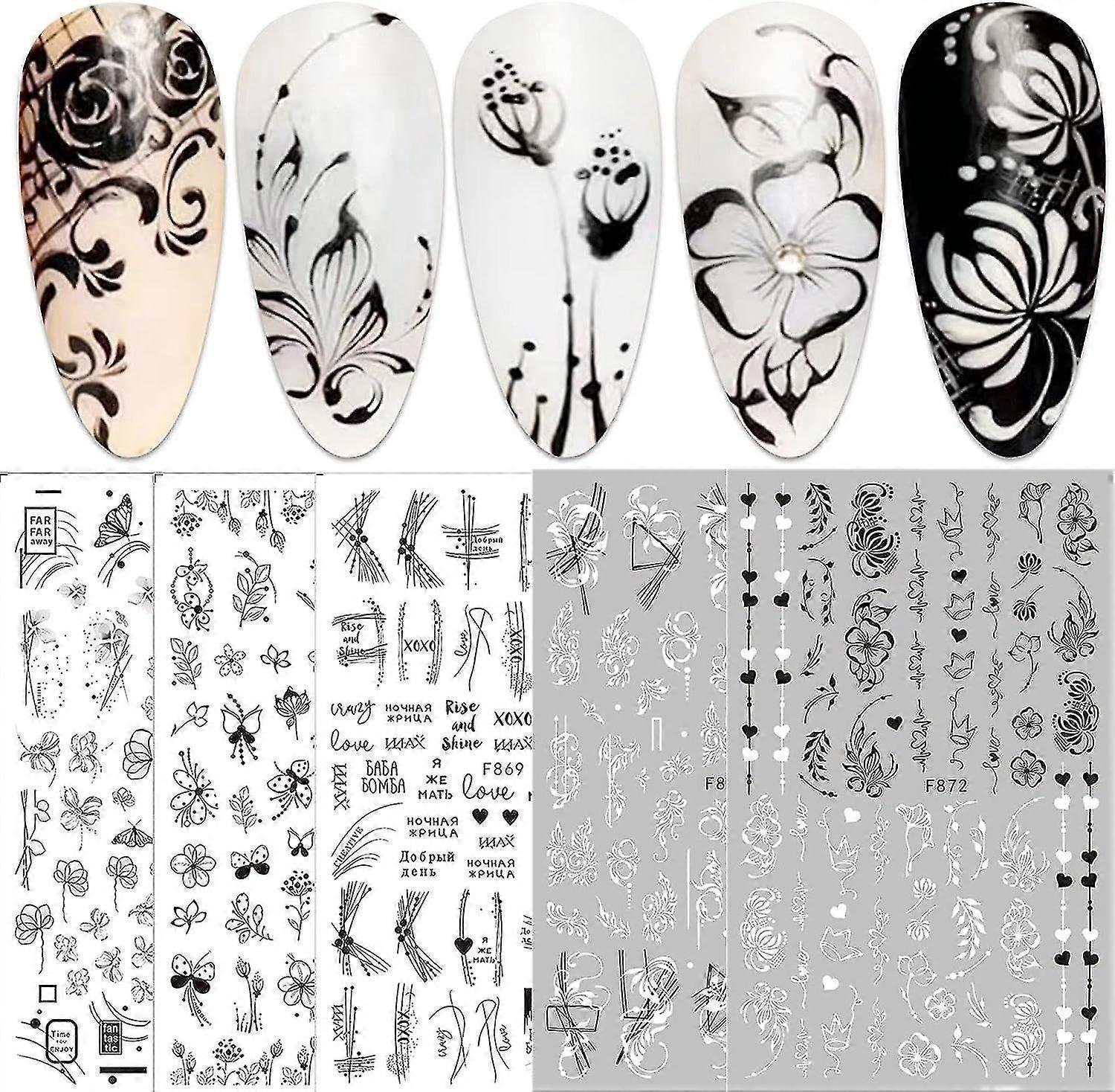 10 sheets floral nail stickers, self-adhesive nail decals for manicure, nail art