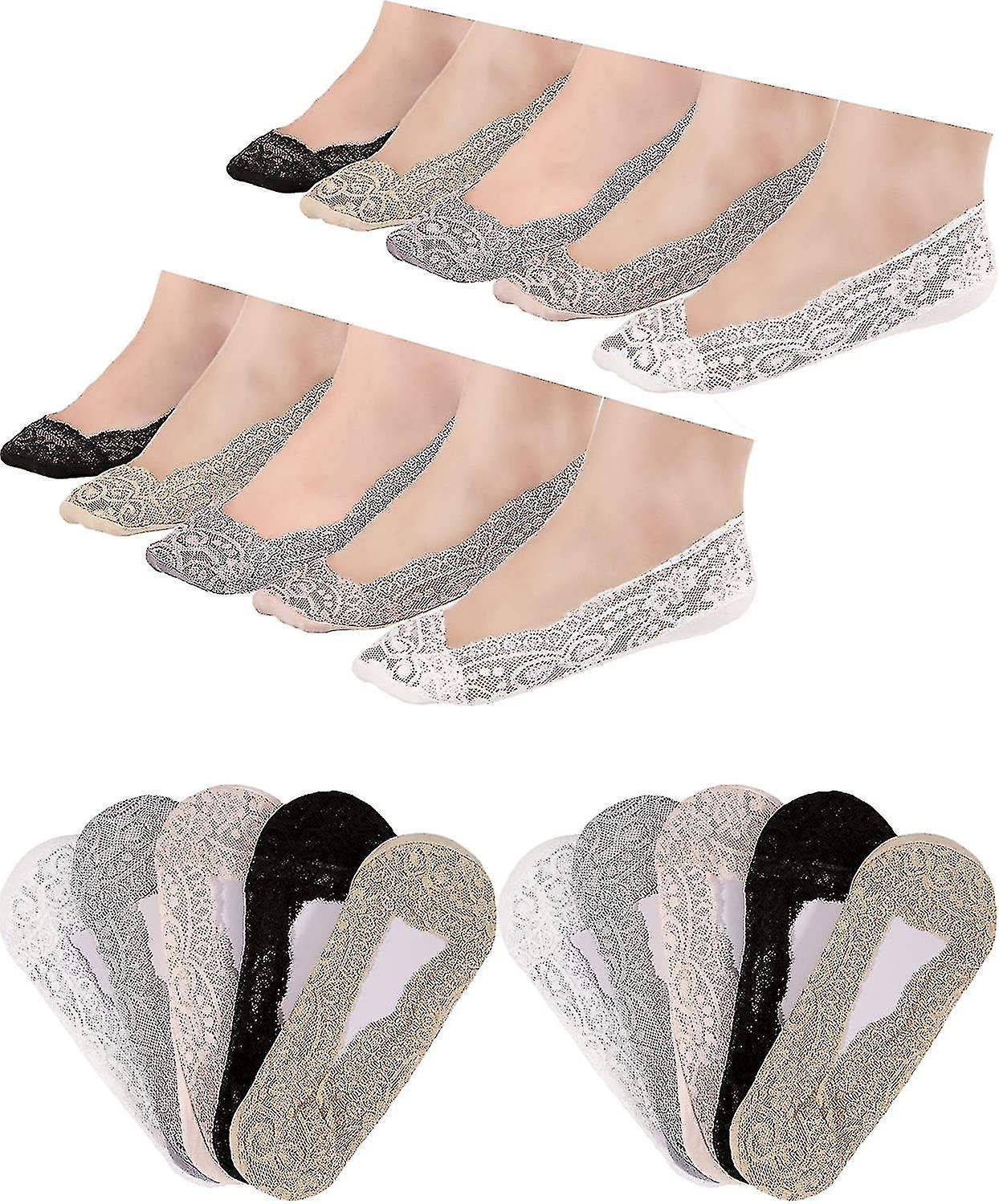 10 Pairs No Show Lace Boat Socks Non-slip Ankle Socks Invisible Socks Compatible Women Favors (5 Colors)(size: One Size)