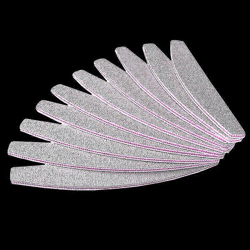 10 packs of Half-moon shaped professional double-sided grit nail files are included. Nail file, Work quickly to trim, shape or polishing the nail with your desired shape or length Great manicure kit. File your nails with a lighter touch without damaging the nail, whether it is fingernails, toenails, natural nails, acrylic nails and false nails Fingernail file is perfect to remove nail gel in your extended or fake nails. Also fit for Pet Grooming Nail files for natural nails is easy to clean, could be rinsed with water, perfect for general manicure purpose or professional use