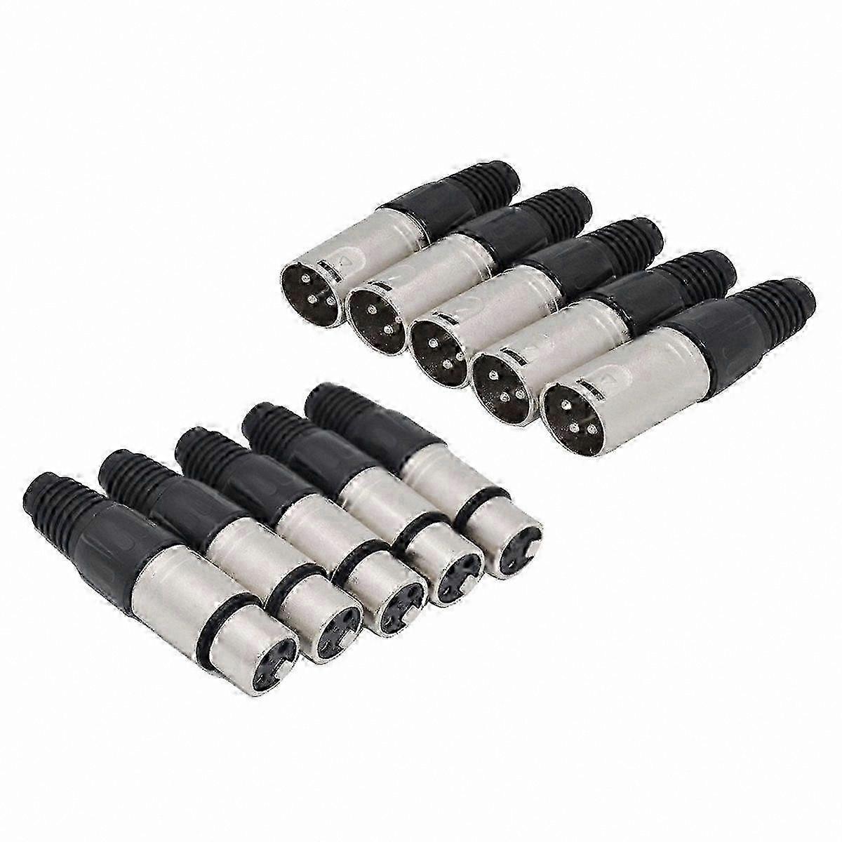 10-Pack 3-Pin XLR Solder Connectors, 5 Male and 5 Female o Plugs