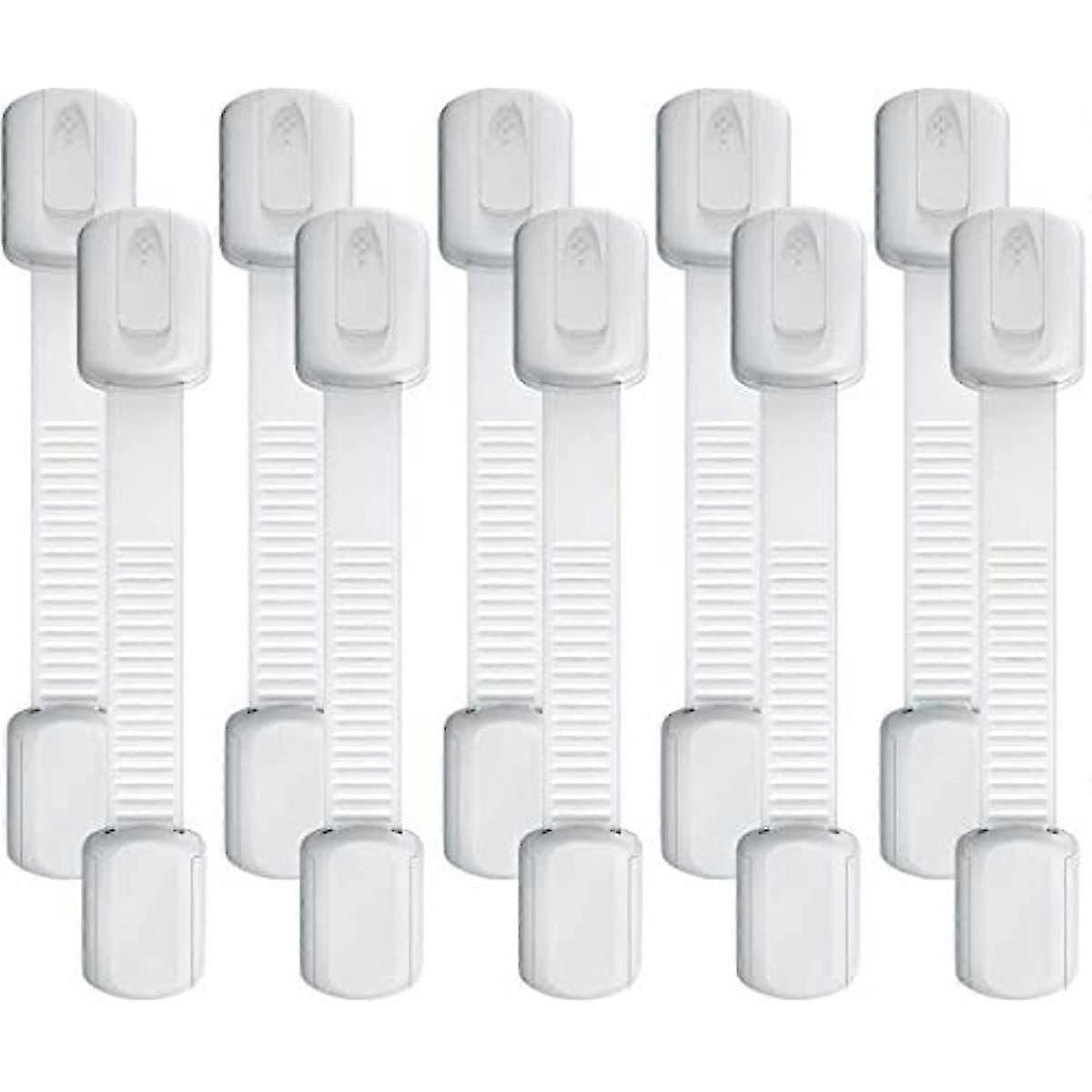 10pk Cabinet Lock White + Bonus Door Stopper | Baby Safety Adjustable 3m Adhesive Lock | Child Proof Cabinets Drawers Toilet Seat Fridge Appliance