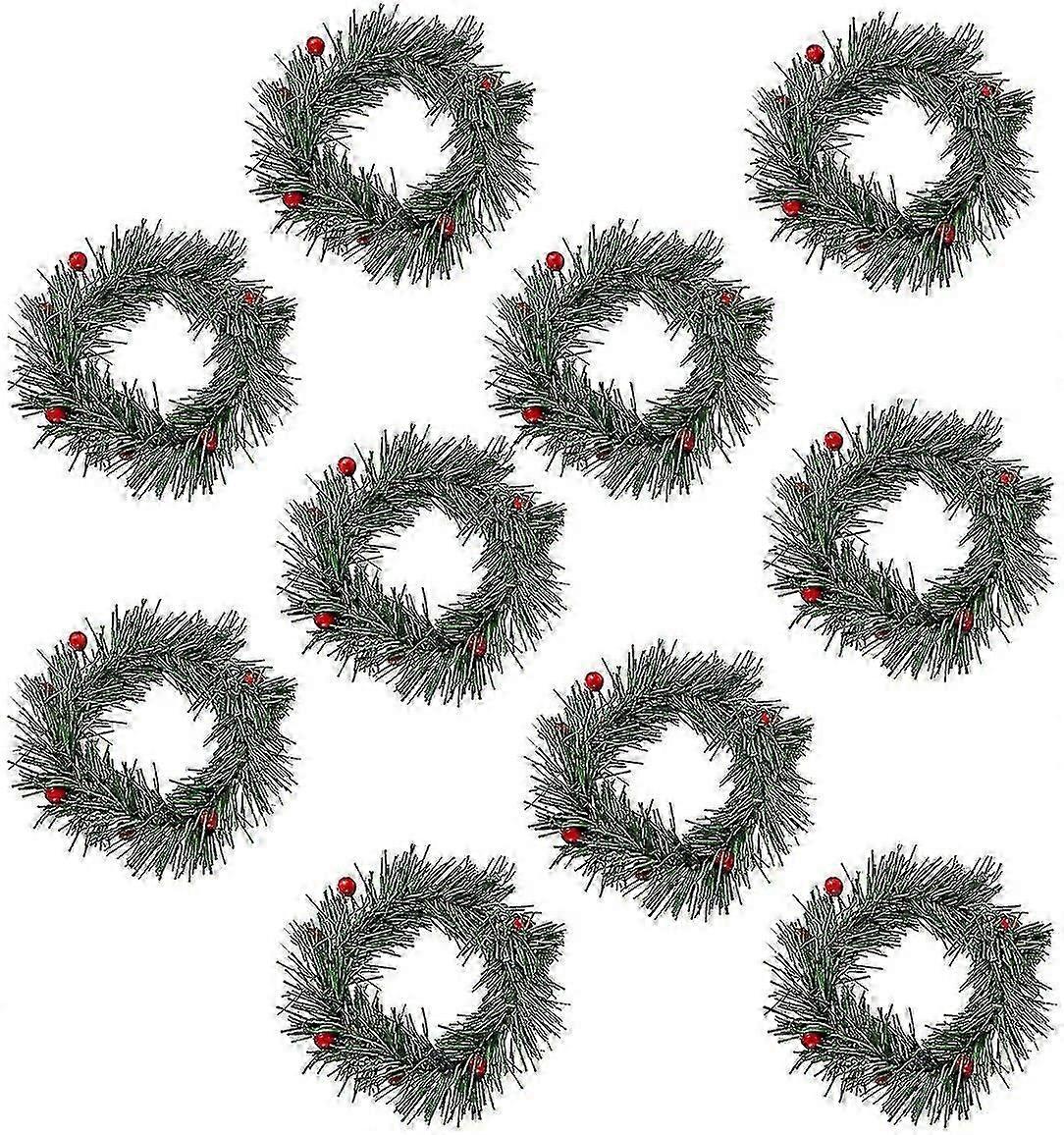 Pack Of 10 5.7-inch Mini Christmas Wreaths, Christmas Candle Rings, Christmas Napkin Rings-mxbc