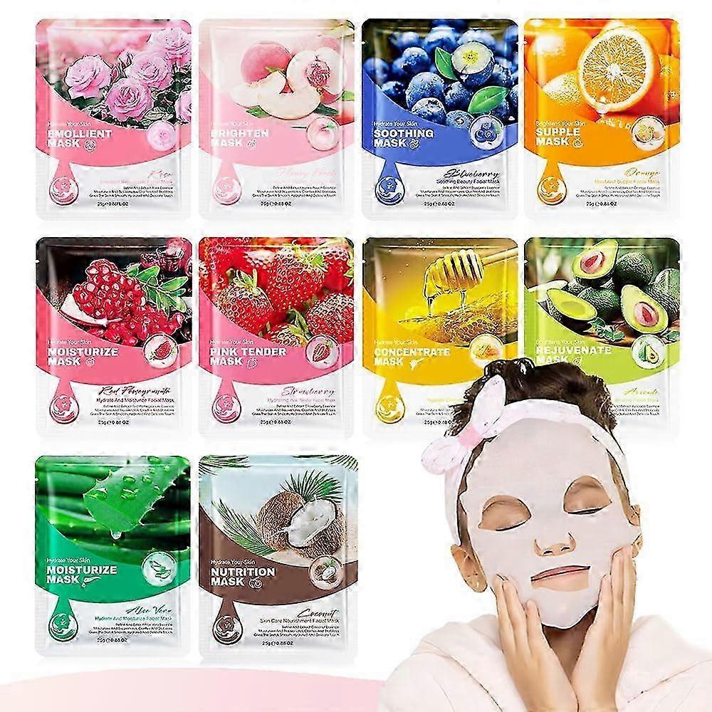 10 PCS Hydrating Nature Face Sheet Masks Skincare, Natural Skin Care Spa Face Mask, Nourish , Moistu