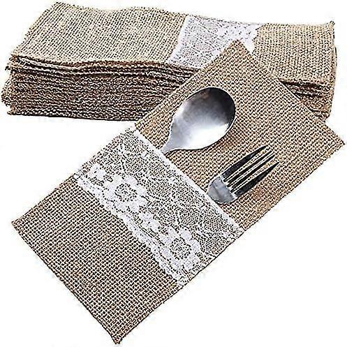 10 PCS Burlap Lace Cutlery Bag, Wedding Table Decoration