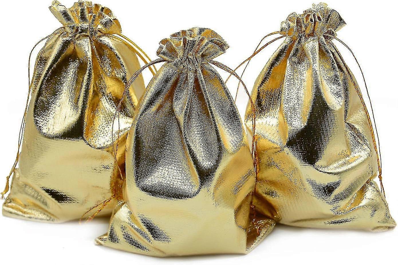 Christmas Pack Of 100 3.54"x4.72" Heavy Duty Gold Drawstring Organza Jewelry Pouches Wedding Party Christmas Favor Gift Candy Chocolate Bags