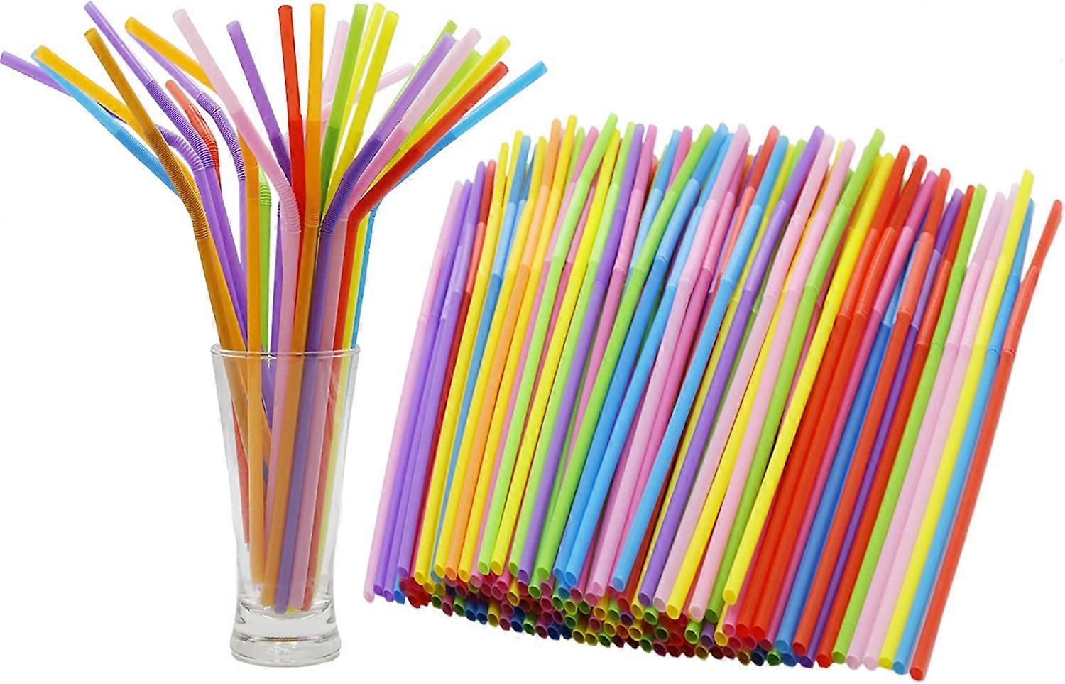100 Colorful Plastic Straws,Reusable Plastic Straws,Flexible Bendy Fancy Straws For Drinking, 5*210mm
