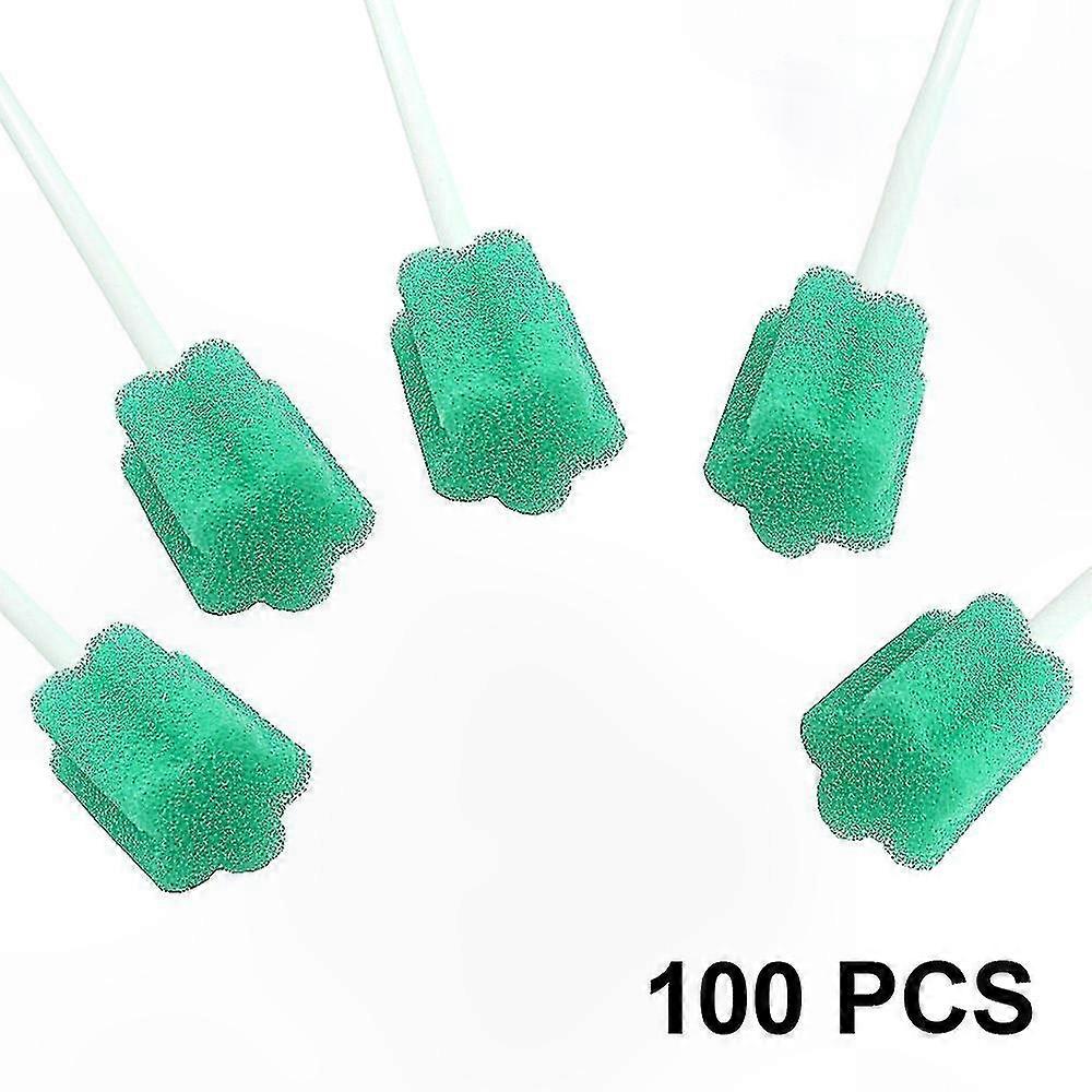 100 Count Disposable Oral Swabs, Untreated Mouth Sponges, Green Color