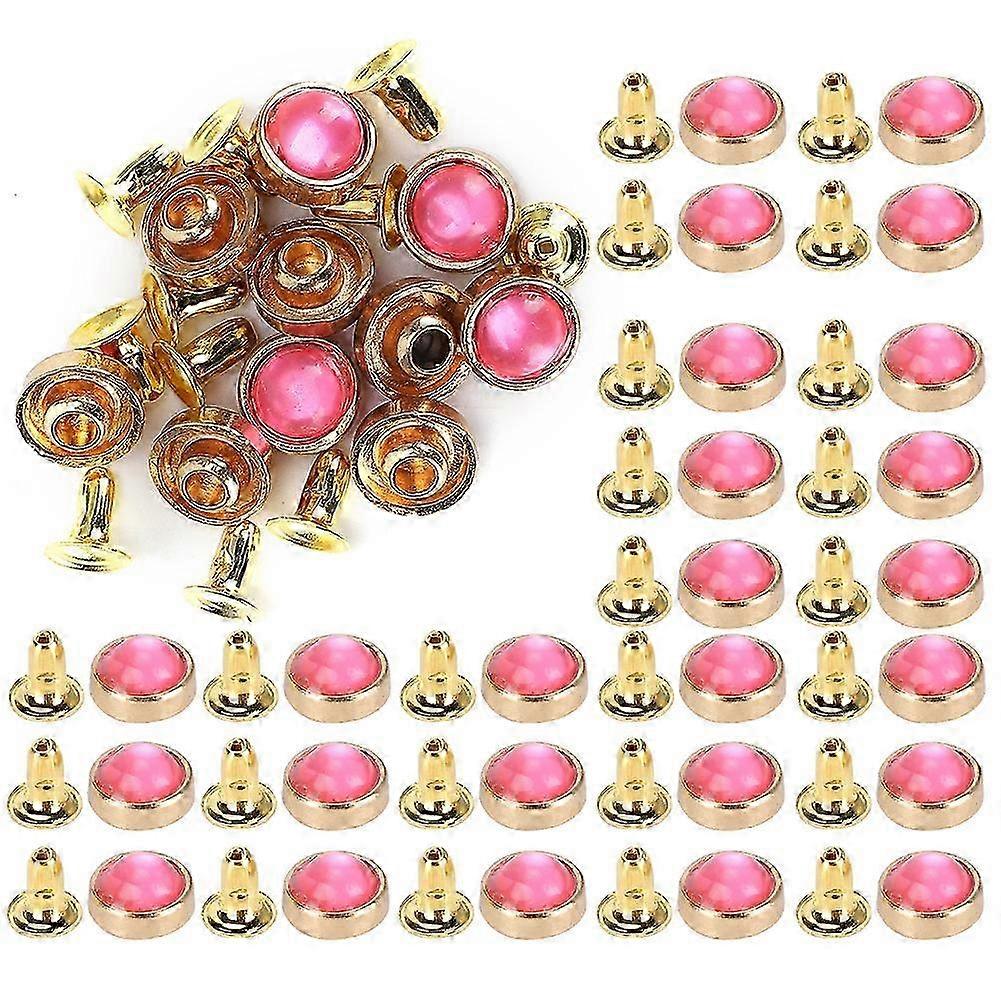 100 Set Color Crystal Rivets Zinc Alloy DIY Tool for Luggage Clothing Shoes 8mm Pink